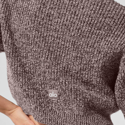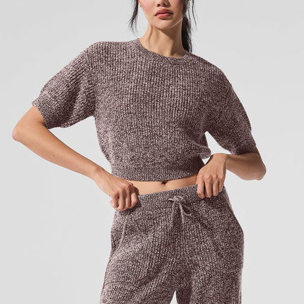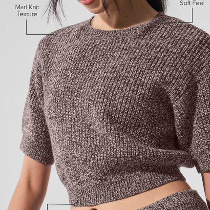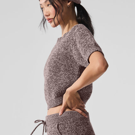 alo Women's Marl Sweater Short Sleeve - Mushroom Marl