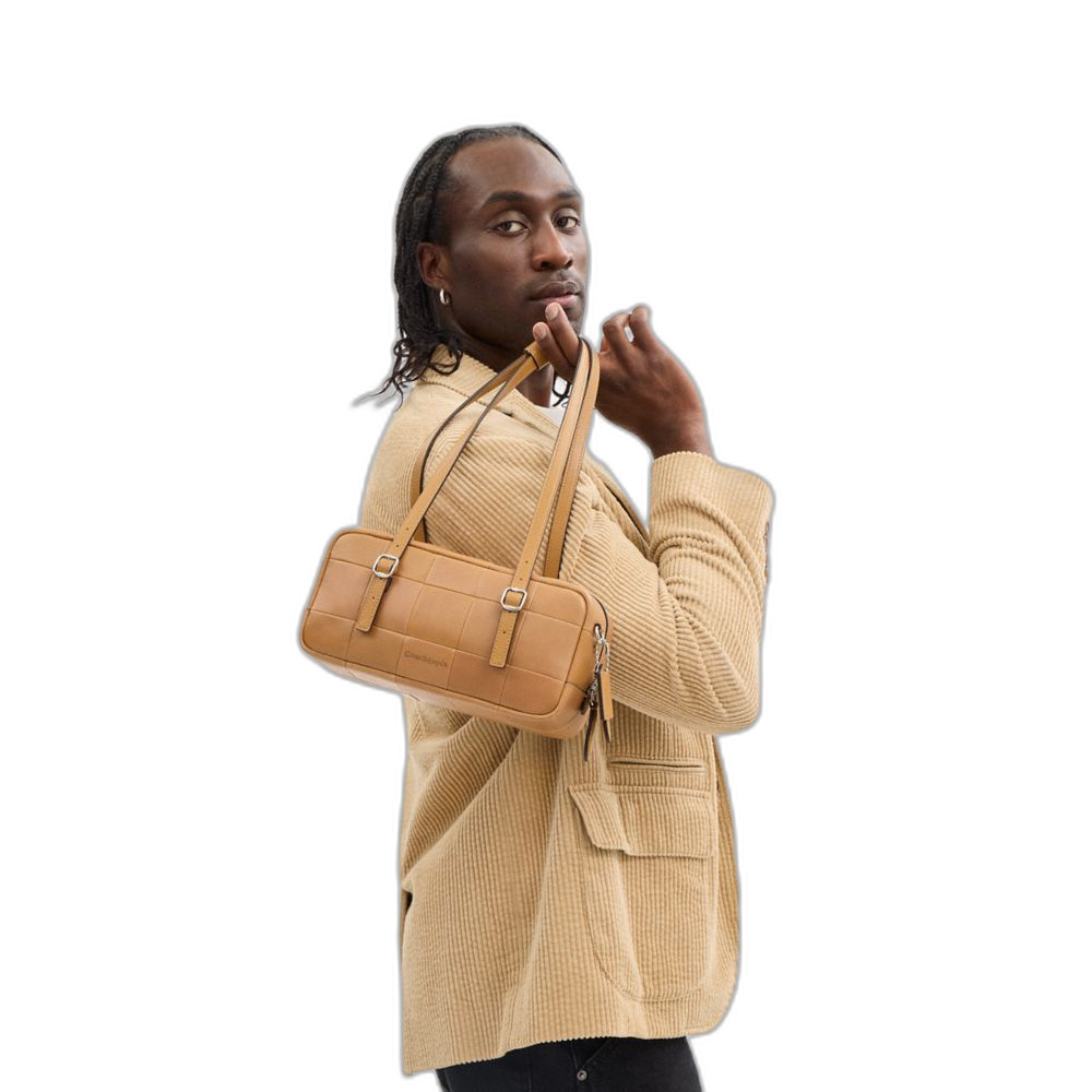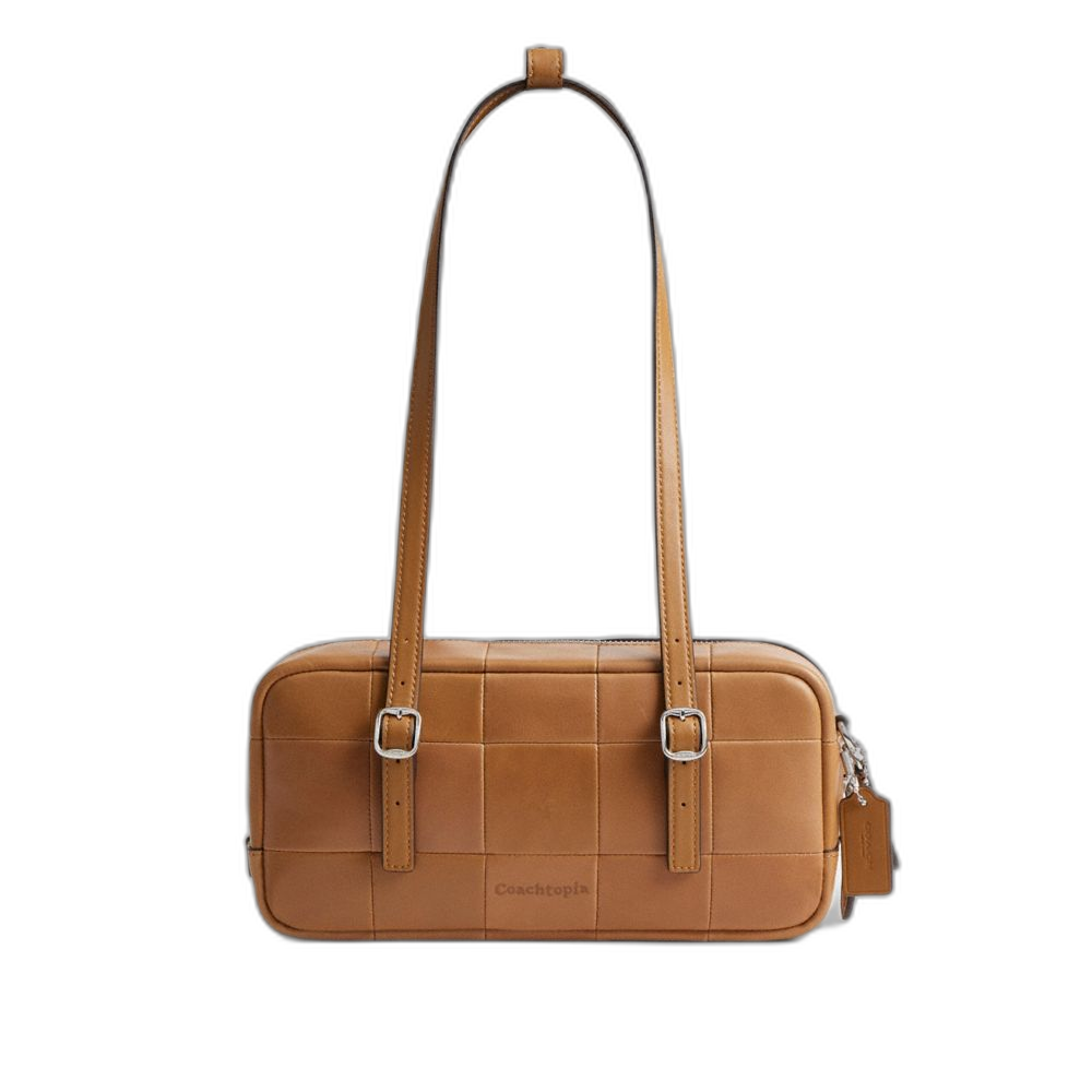 Coach Women's Alter/Ego Satchel Bag In Checkerboard Upcrafted Leather Honey Brown