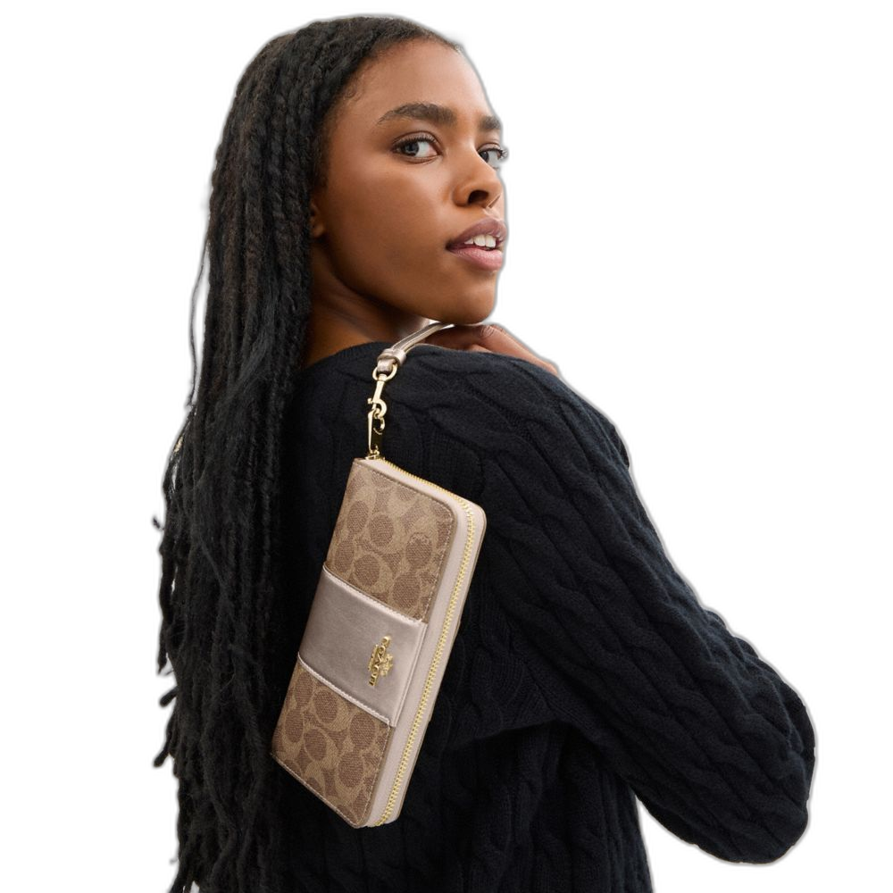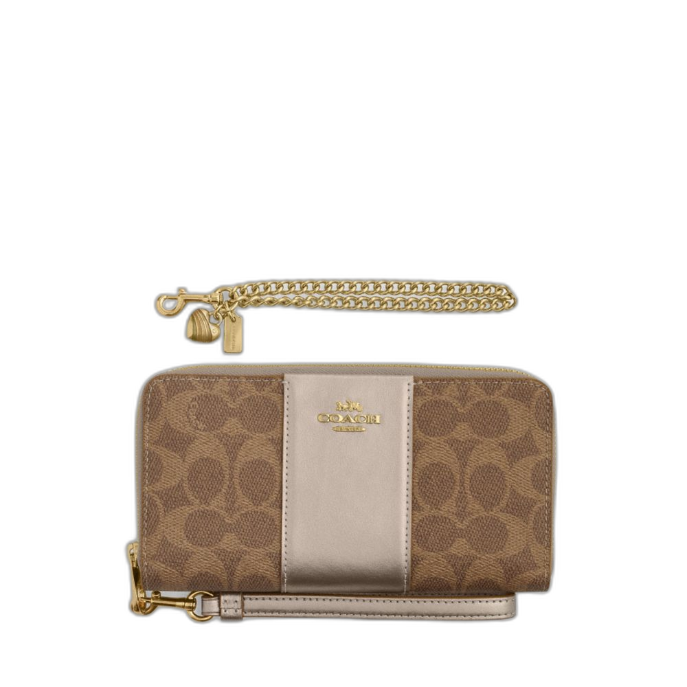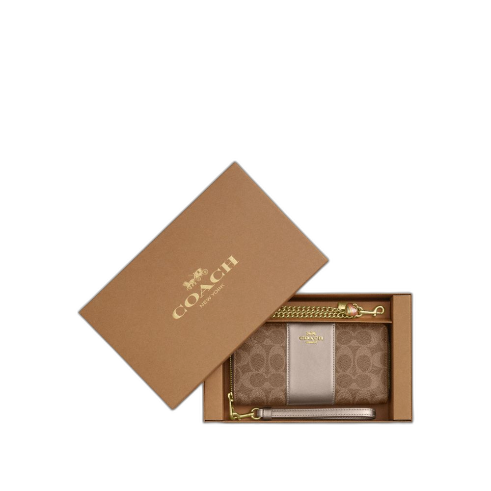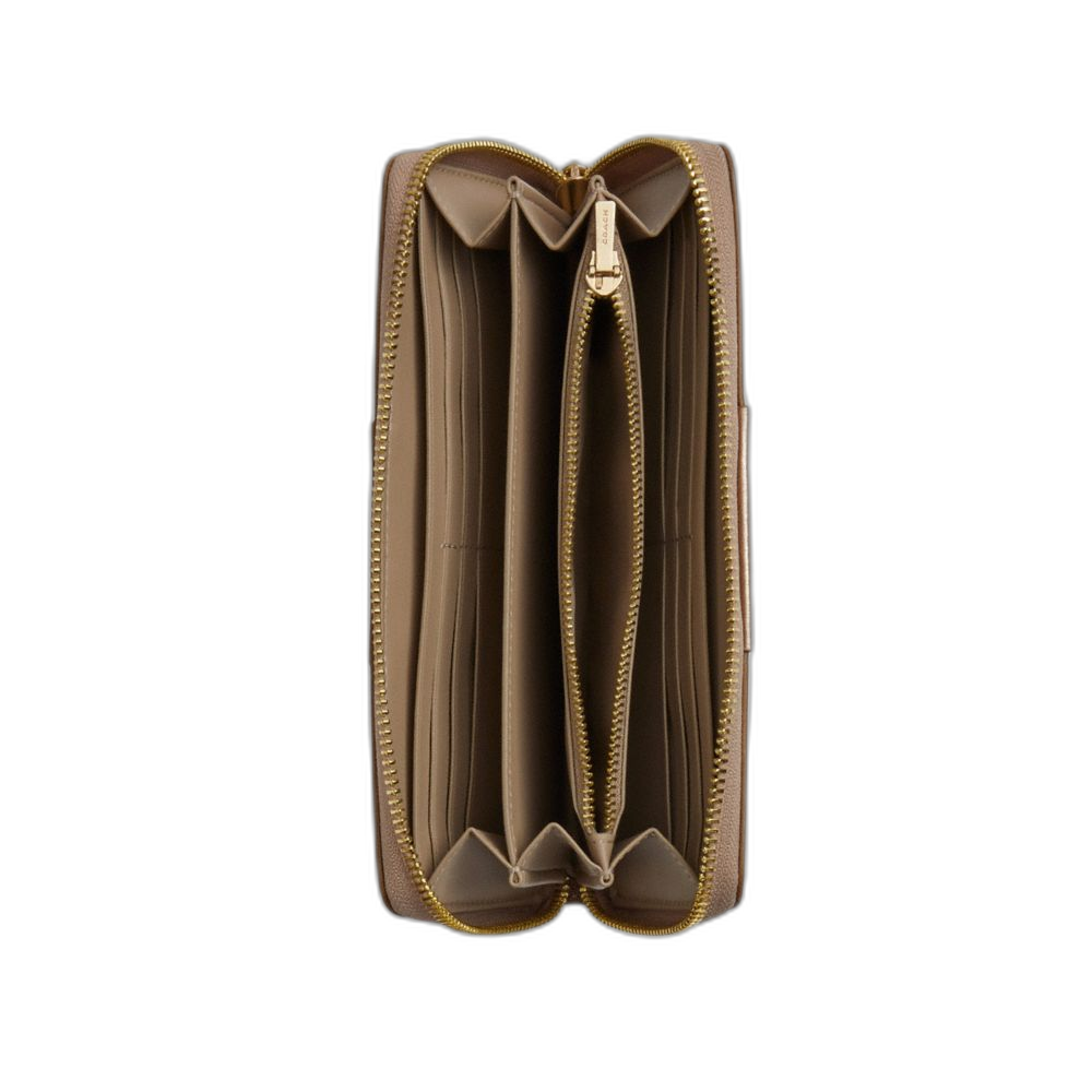 Coach Women's Boxed Long Zip Around Wallet In Signature Canvas Gold/Tan/Light Champagne