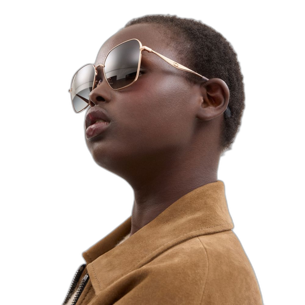 Coach Women's C Hardware Metal Oversized Square Sunglasses Grey Gradient