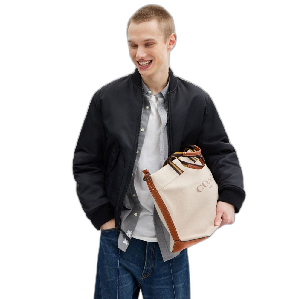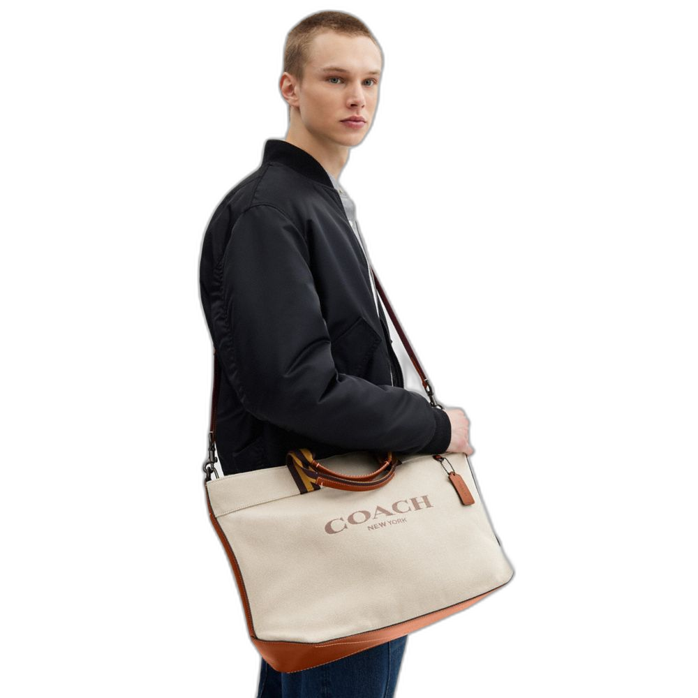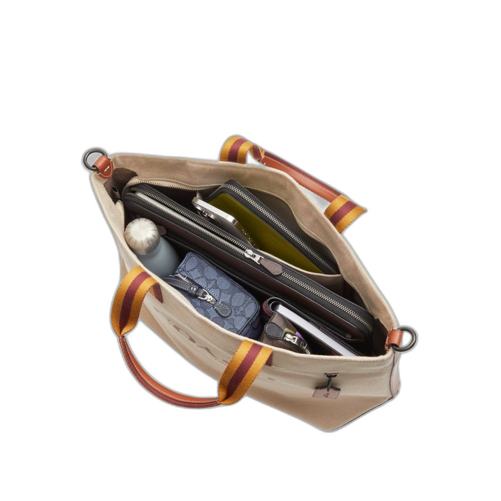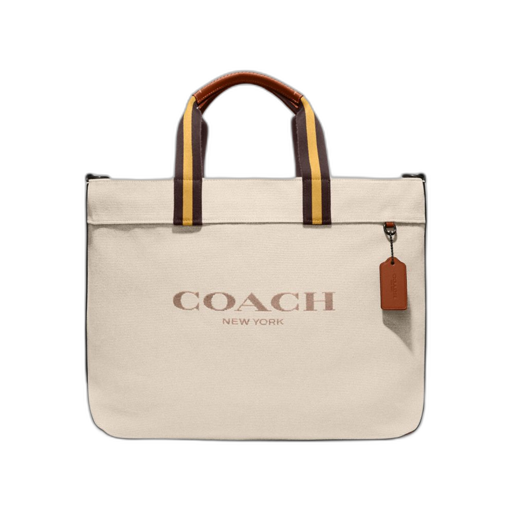 Coach Women's Canvas Tote Bag 38 Black Copper/Dark Natural