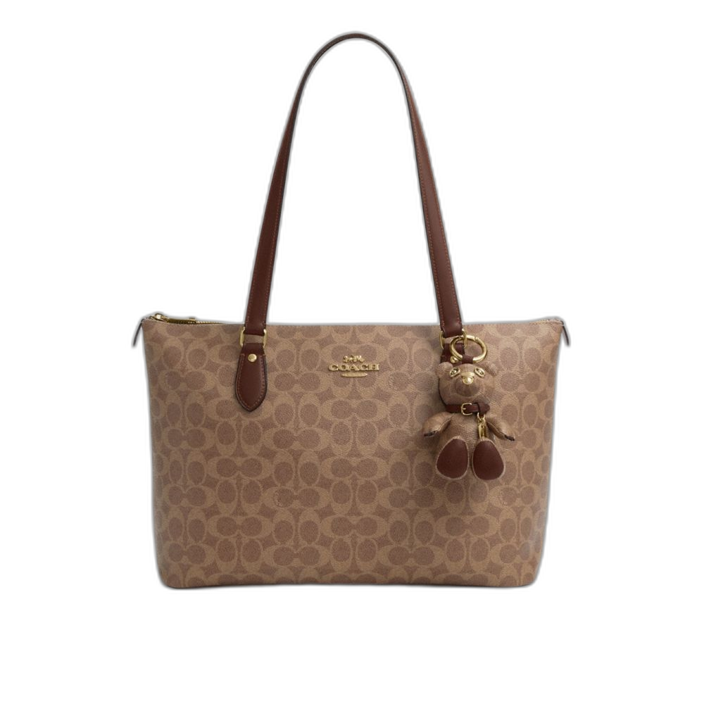 Coach Women's Collectible Bear Bag Charm In Signature Canvas Gold/Tan/Brown