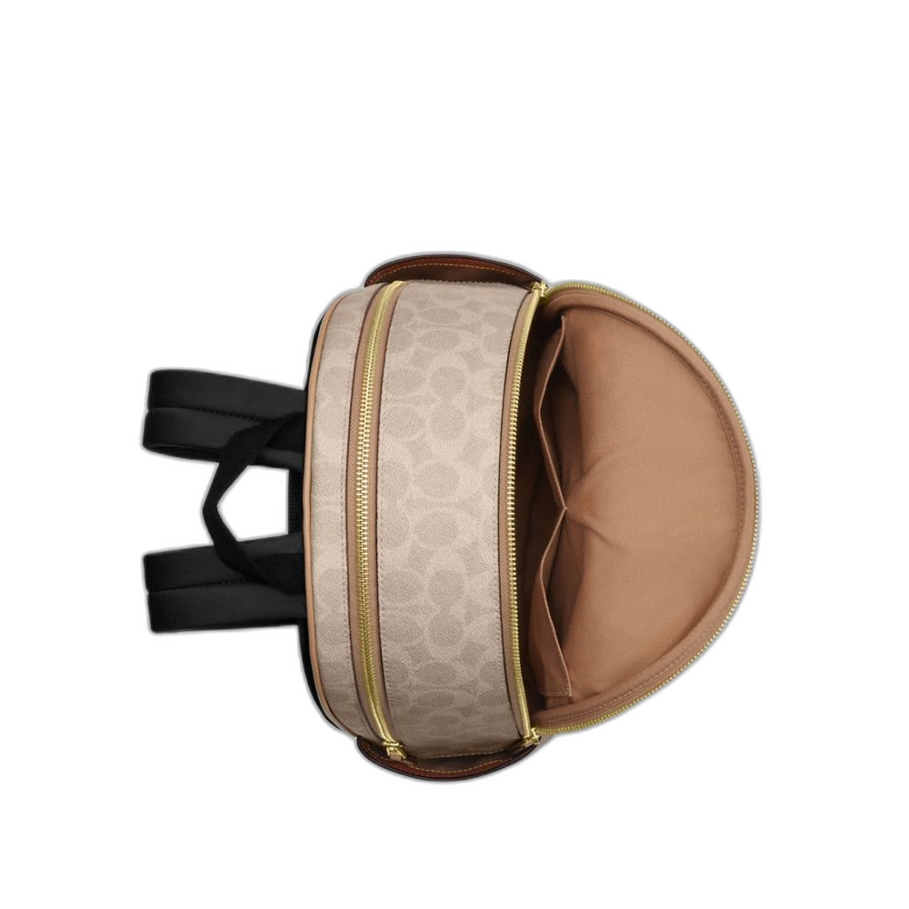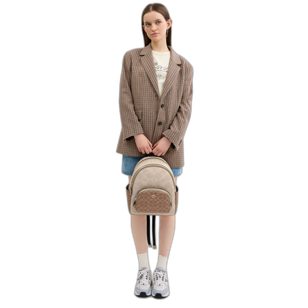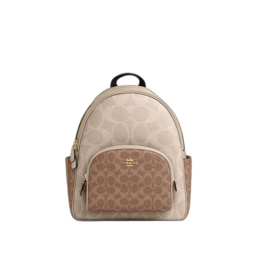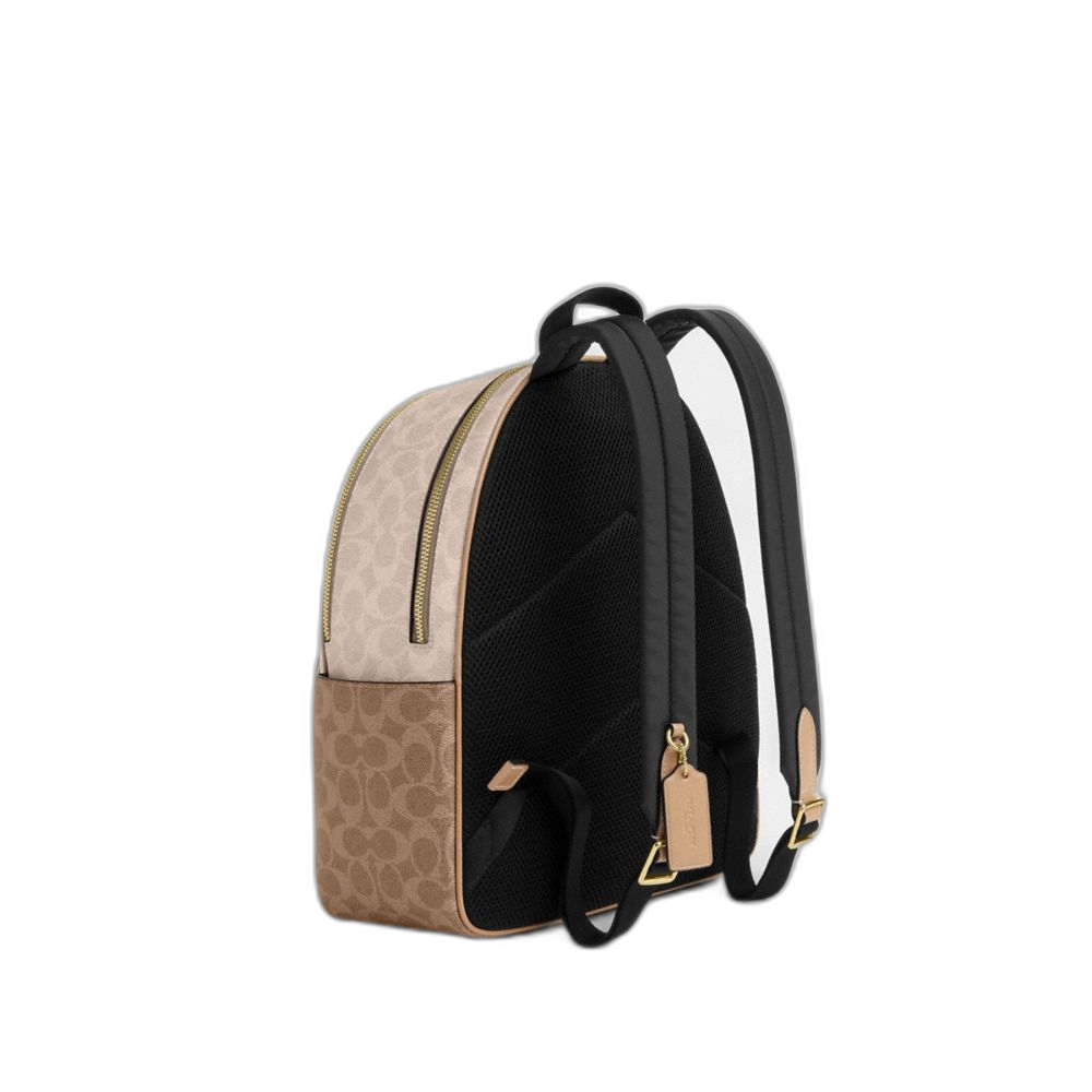 Coach Women's Court Backpack In Blocked Signature Canvas Gold/Sand/Tan