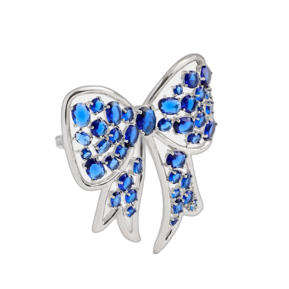 Coach Women's Crystal Bow Brooch Silver/Blue