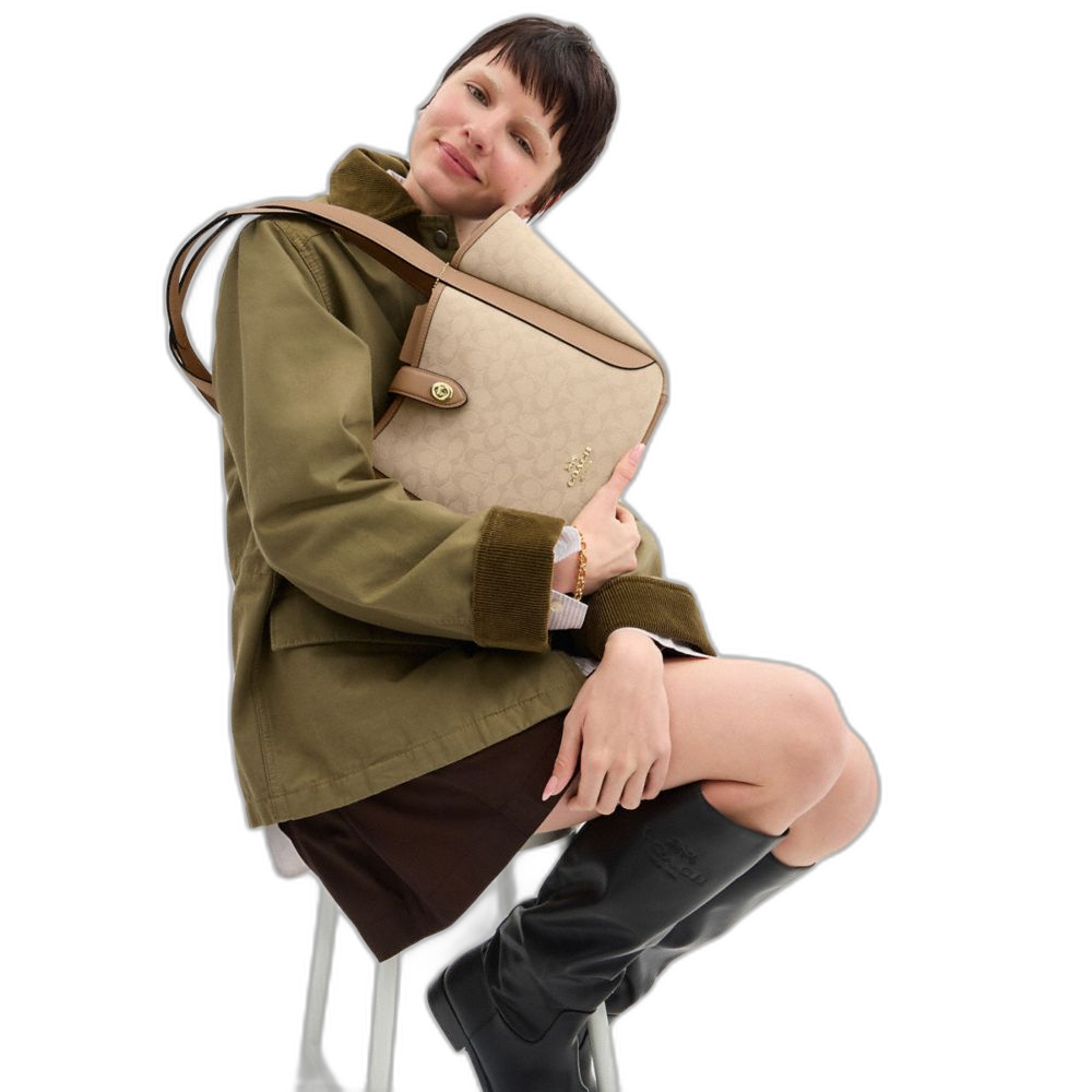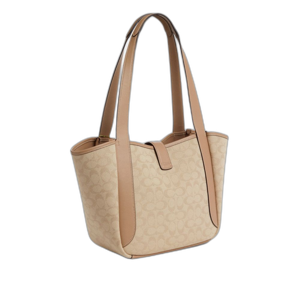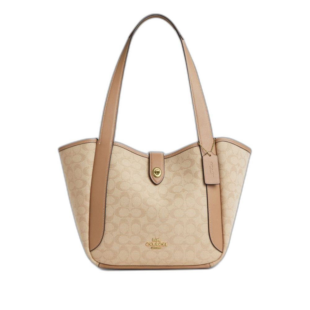 Coach Women's Hadley Turnlock Tote Bag With Signature Canvas Im/Dark Natural Multi