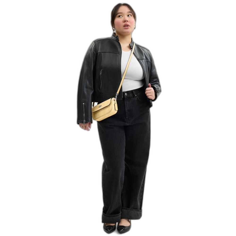Signature coated canvas and smooth leather Inside open pocket Snap closure, fabric lining Detachable handle with 8 1/4" drop Outside... Read more