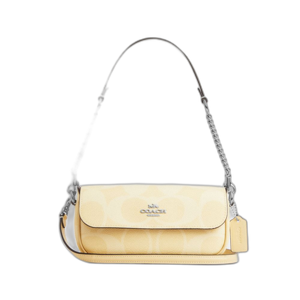 Coach Women's Hailey Flap Bag In Signature Canvas Silver/Hay