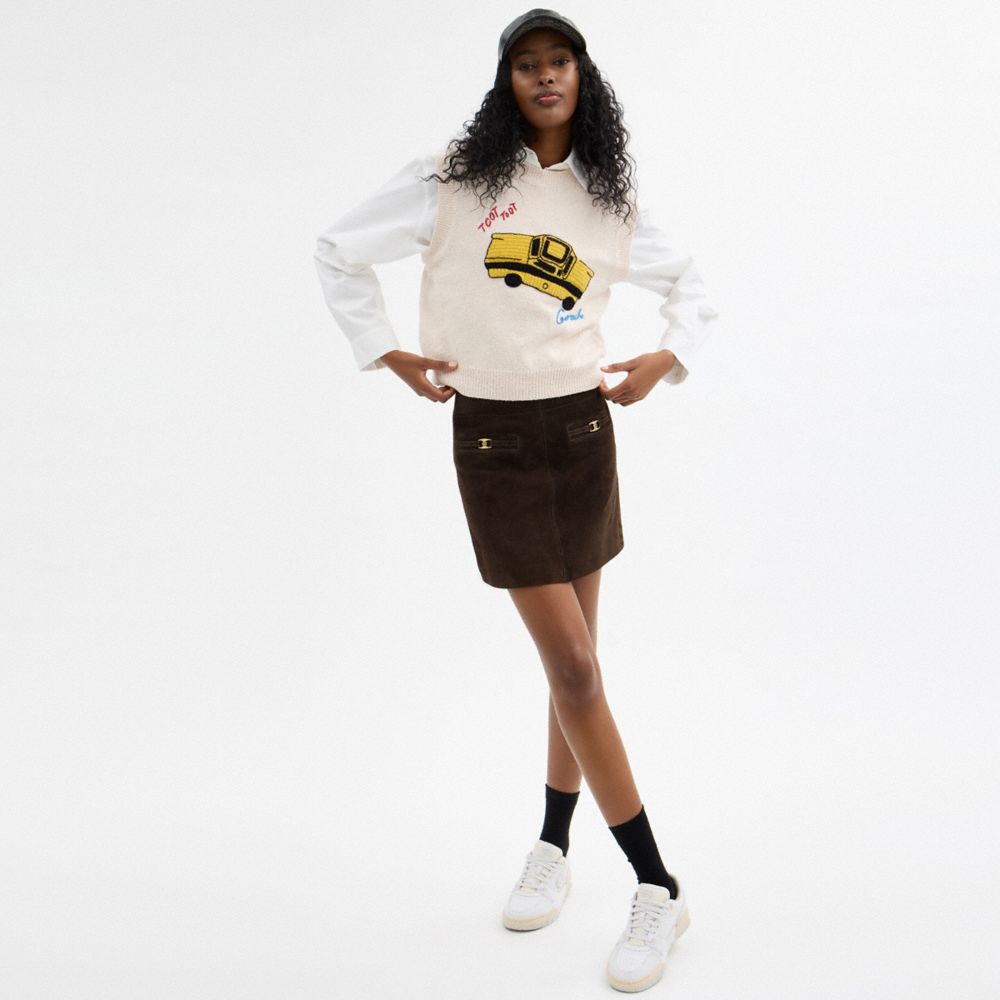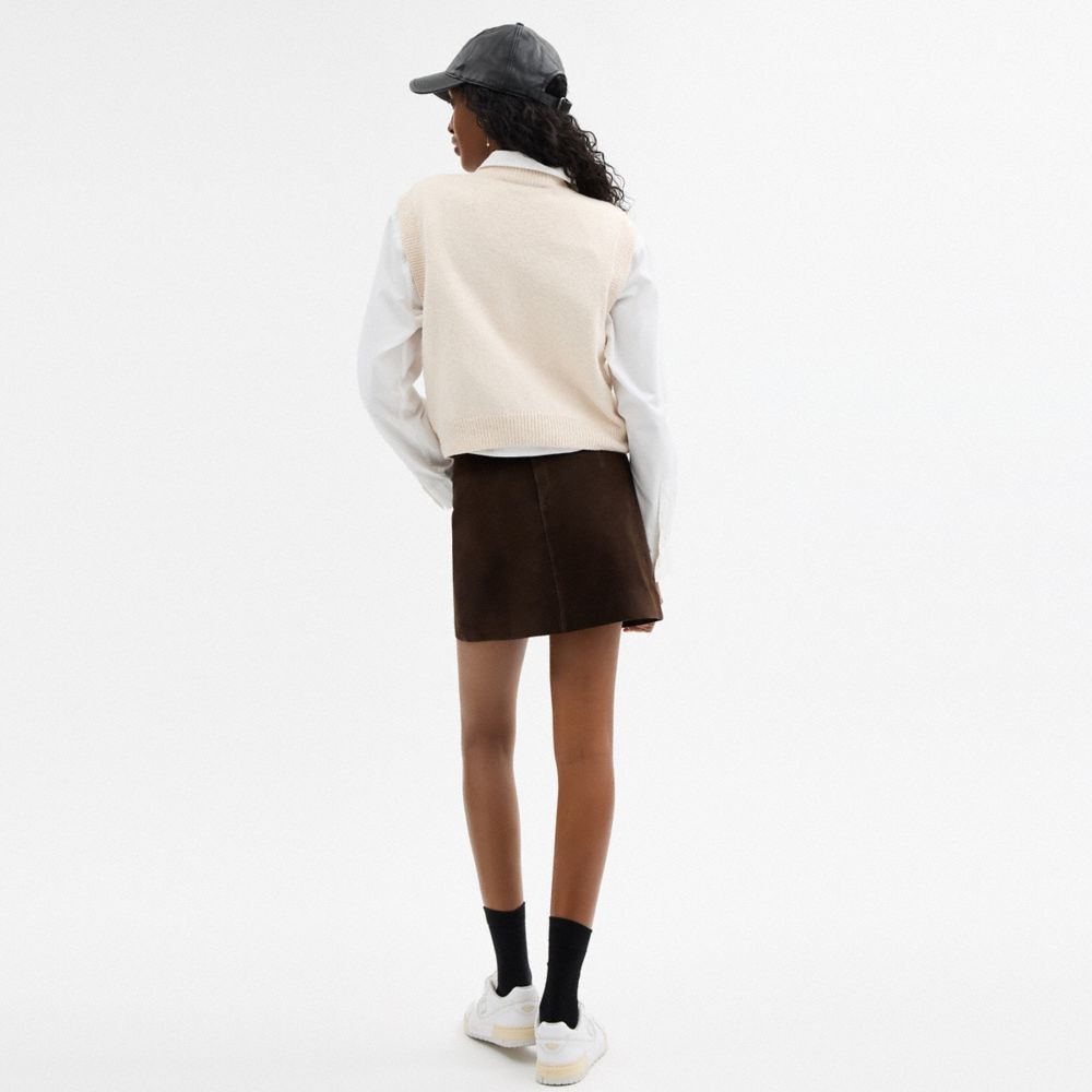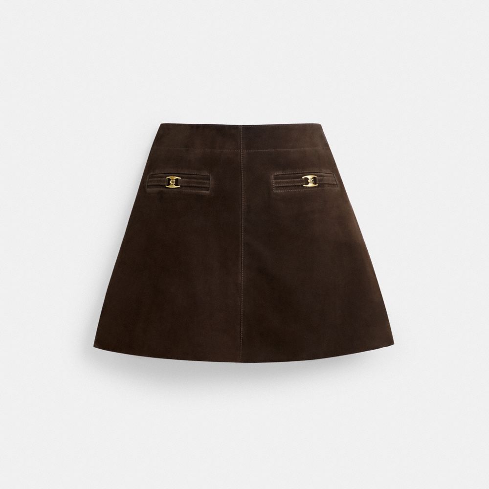 Coach Women's Heritage C Suede Mini Skirt Dark Brown