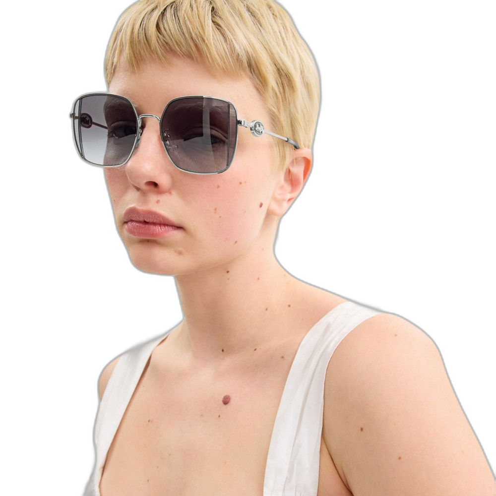 Coach Women's Horse And Carriage Metal Oversized Square Sunglasses Dusty Blue