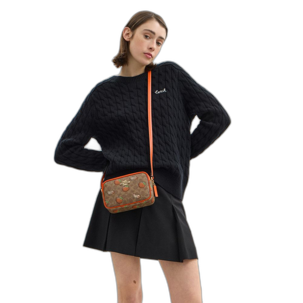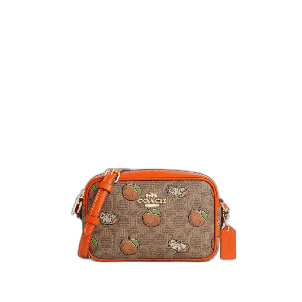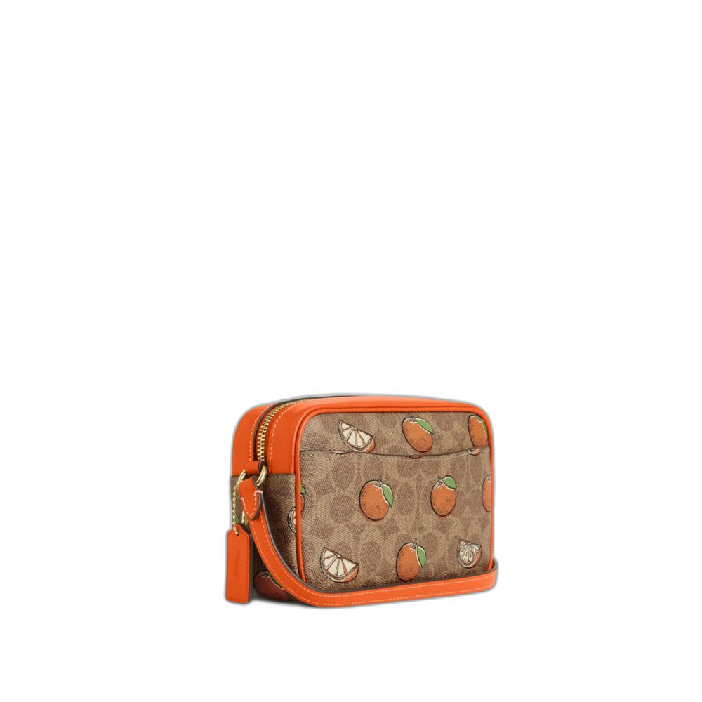 Coach Women's Mini Jamie Camera Bag In Signature Canvas With Orange Print Gold/Tan Multi