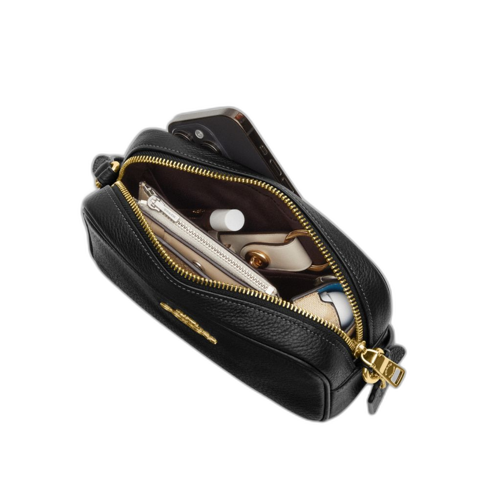 Signature coated canvas Two credit card slots Inside snap pocket Zip closure, fabric lining Outside open pocket Adjustable strap with... Read more