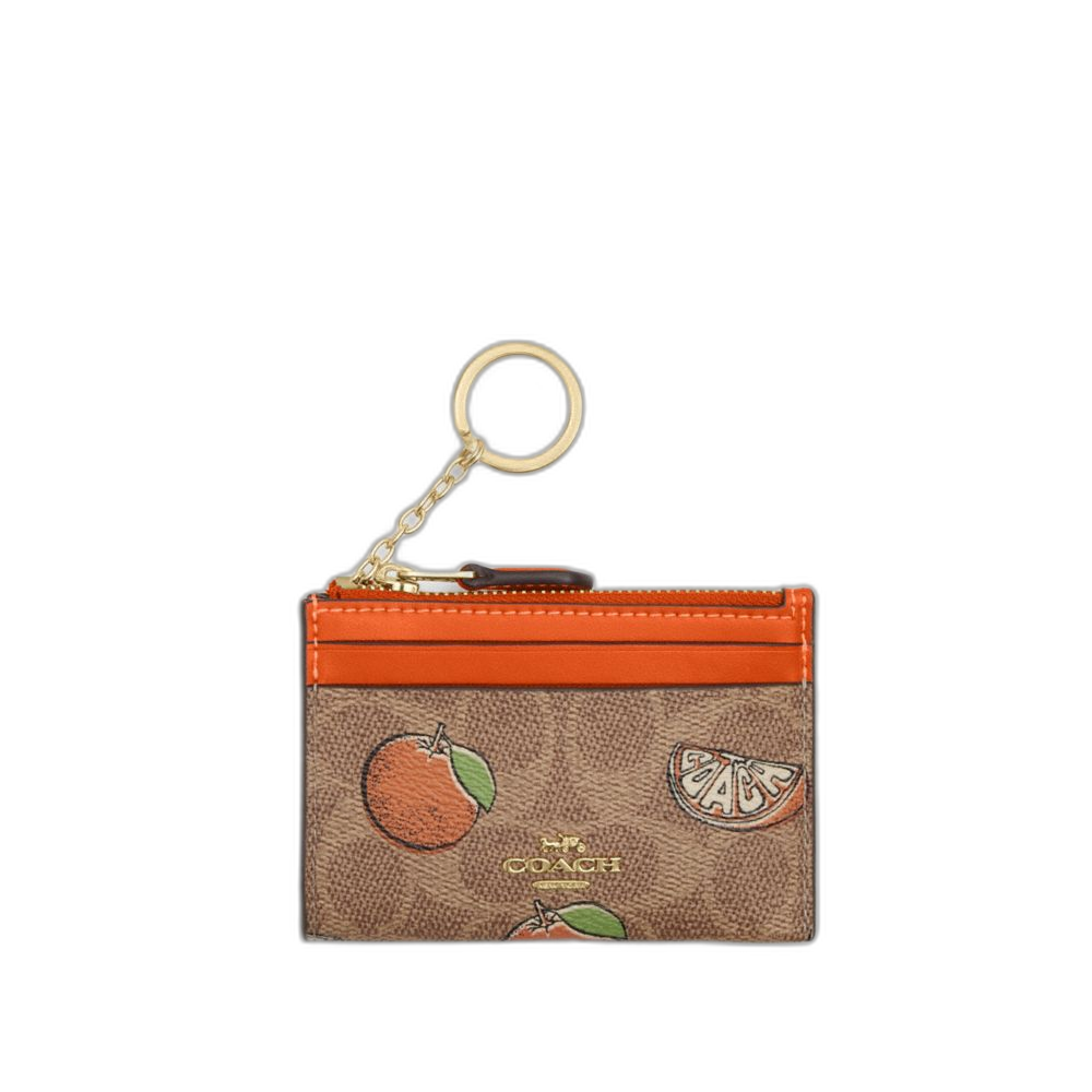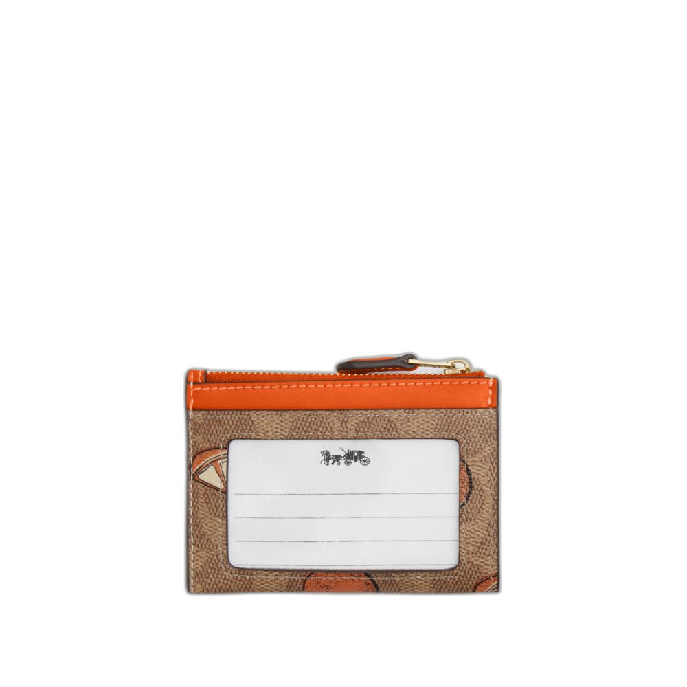 Coach Women's Mini Skinny Id Case In Signature Canvas With Orange Print Gold/Tan Multi