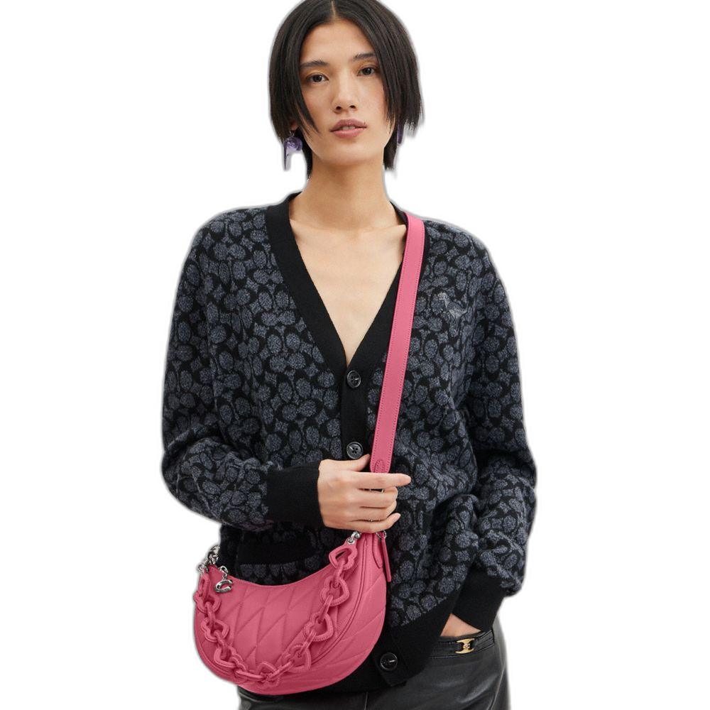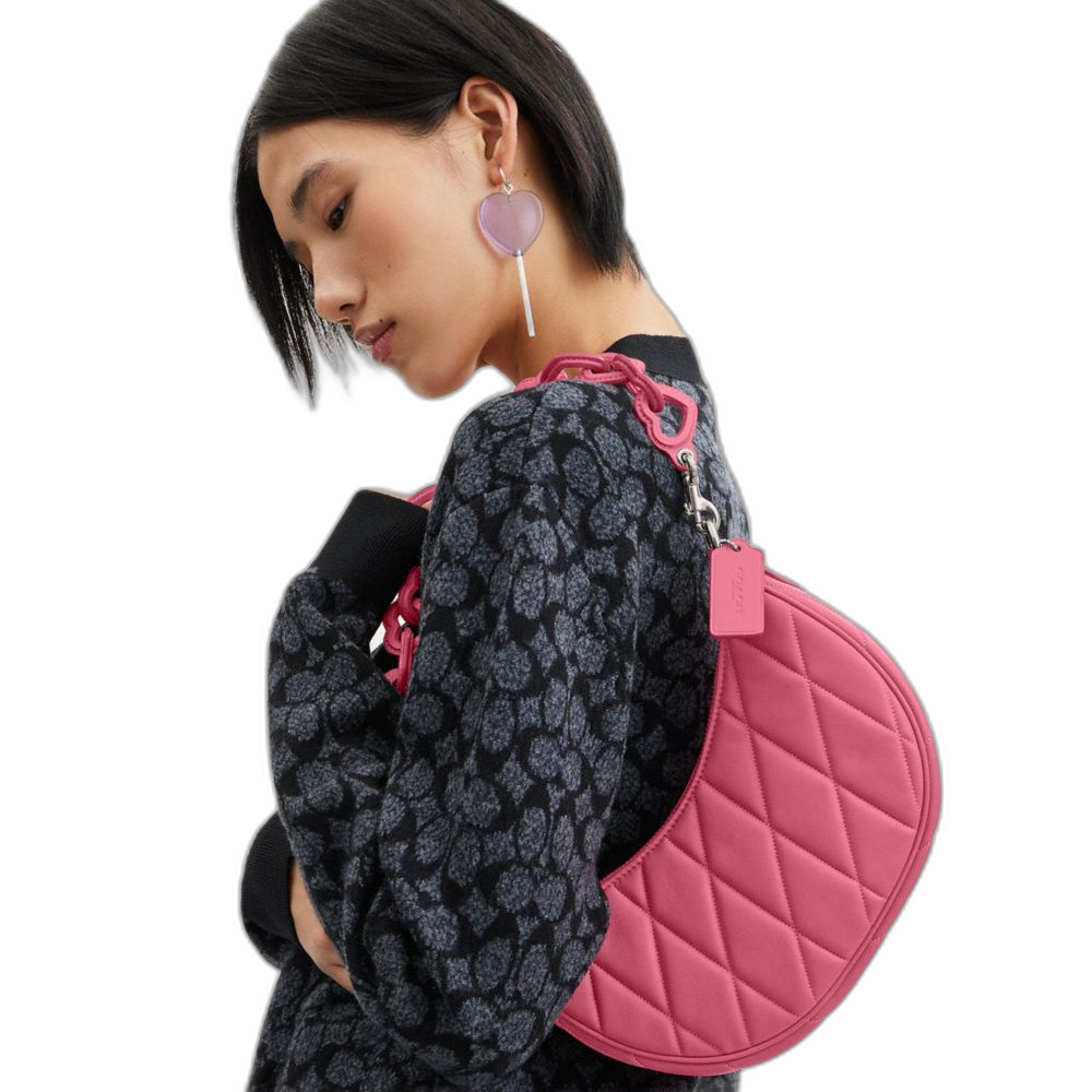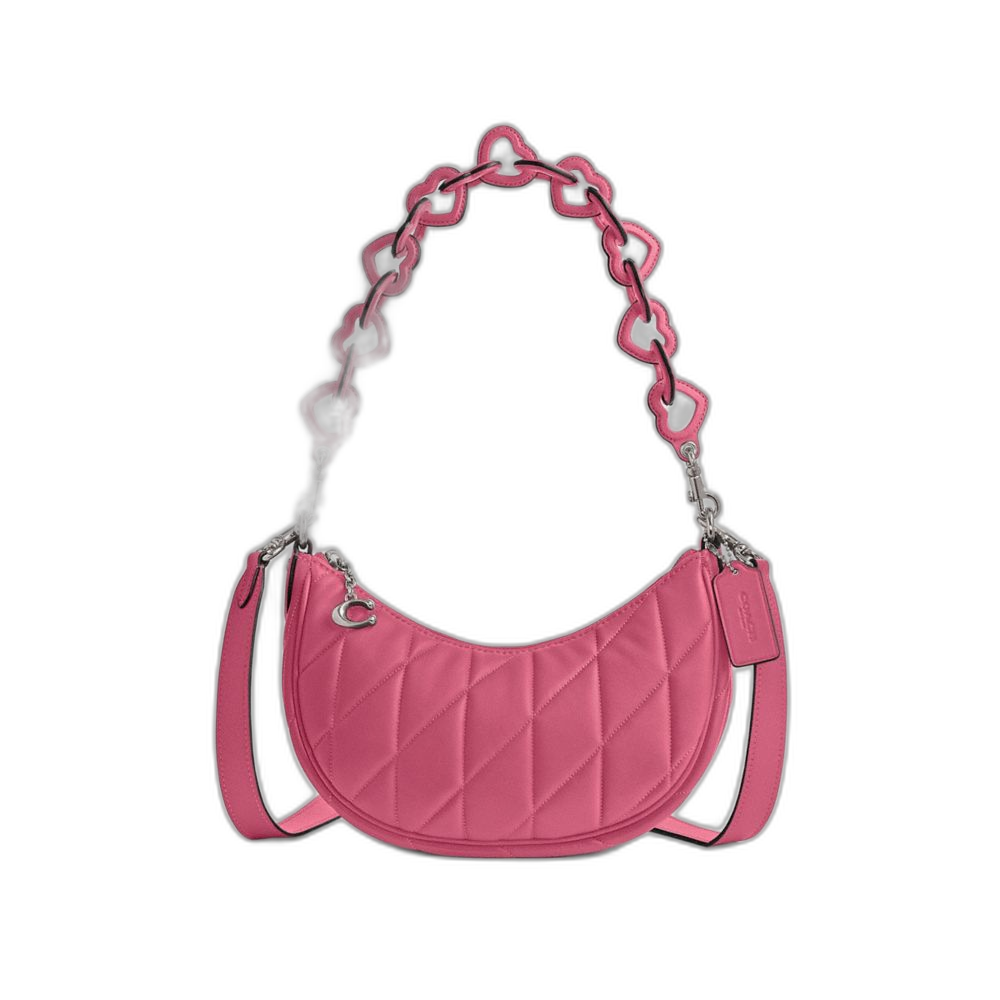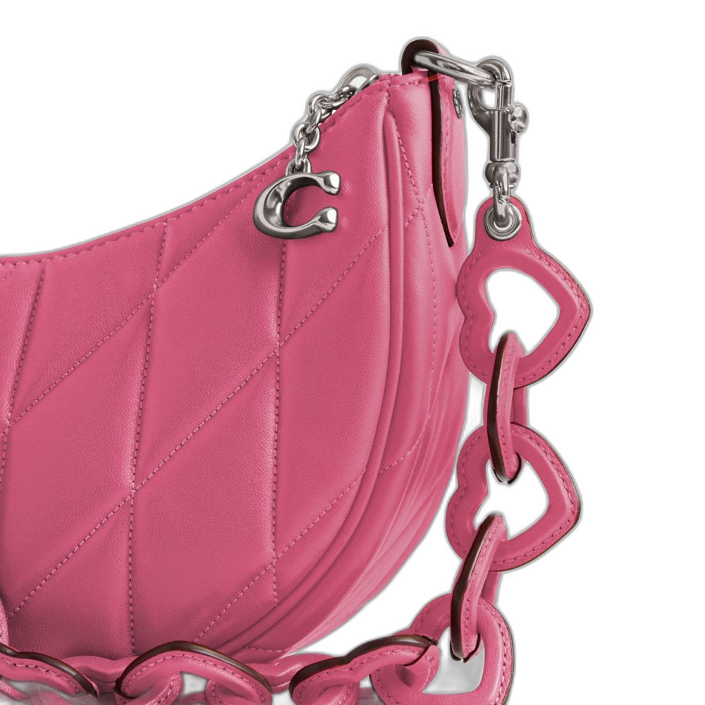 Coach Women's Mira Shoulder Bag With Pillow Quilting And Heart Strap Silver/Petunia