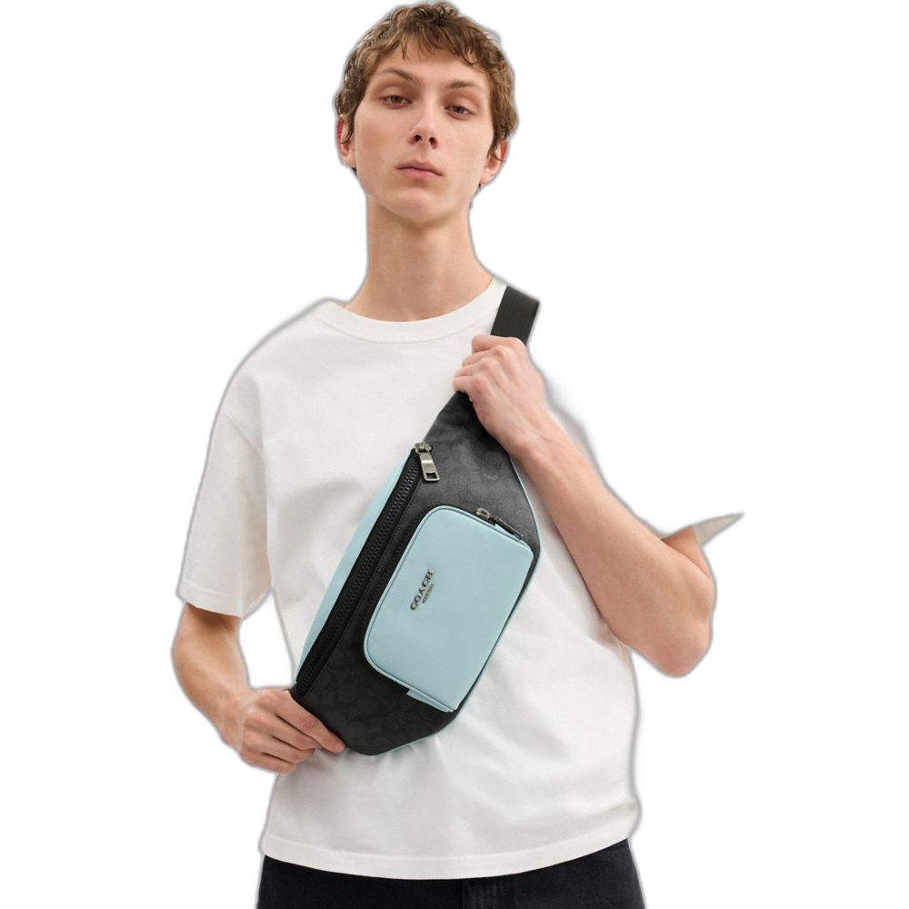 Coach Women's Racer Belt Bag In Colorblock Signature Canvas Qb/Light Blue Multi
