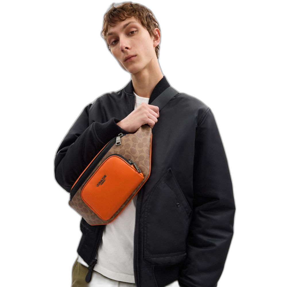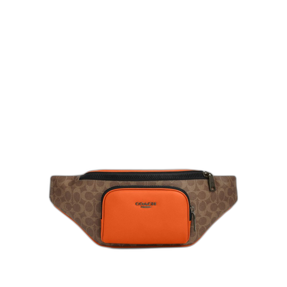 Coach Women's Racer Belt Bag In Colorblock Signature Canvas Qb/Spice Orange Multi