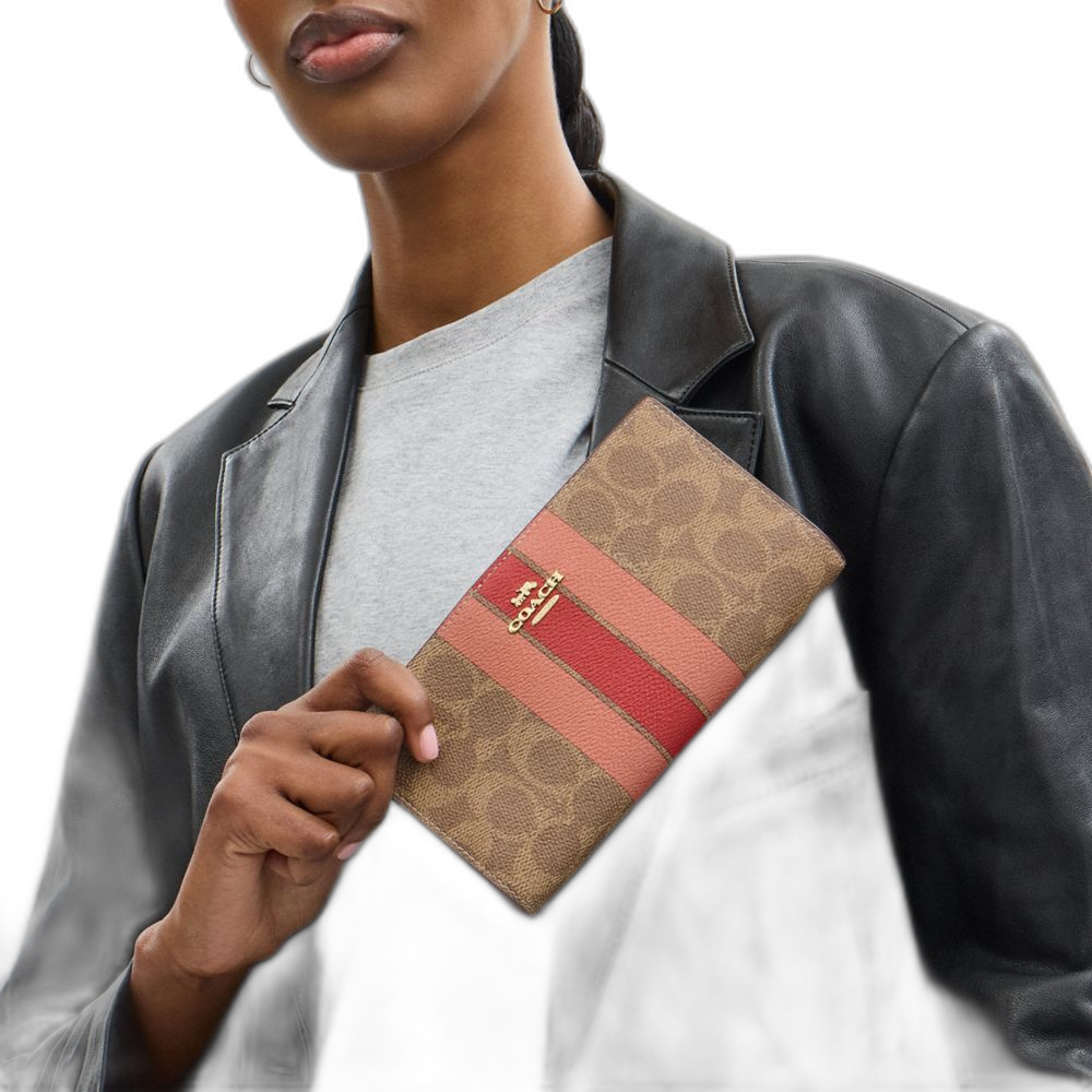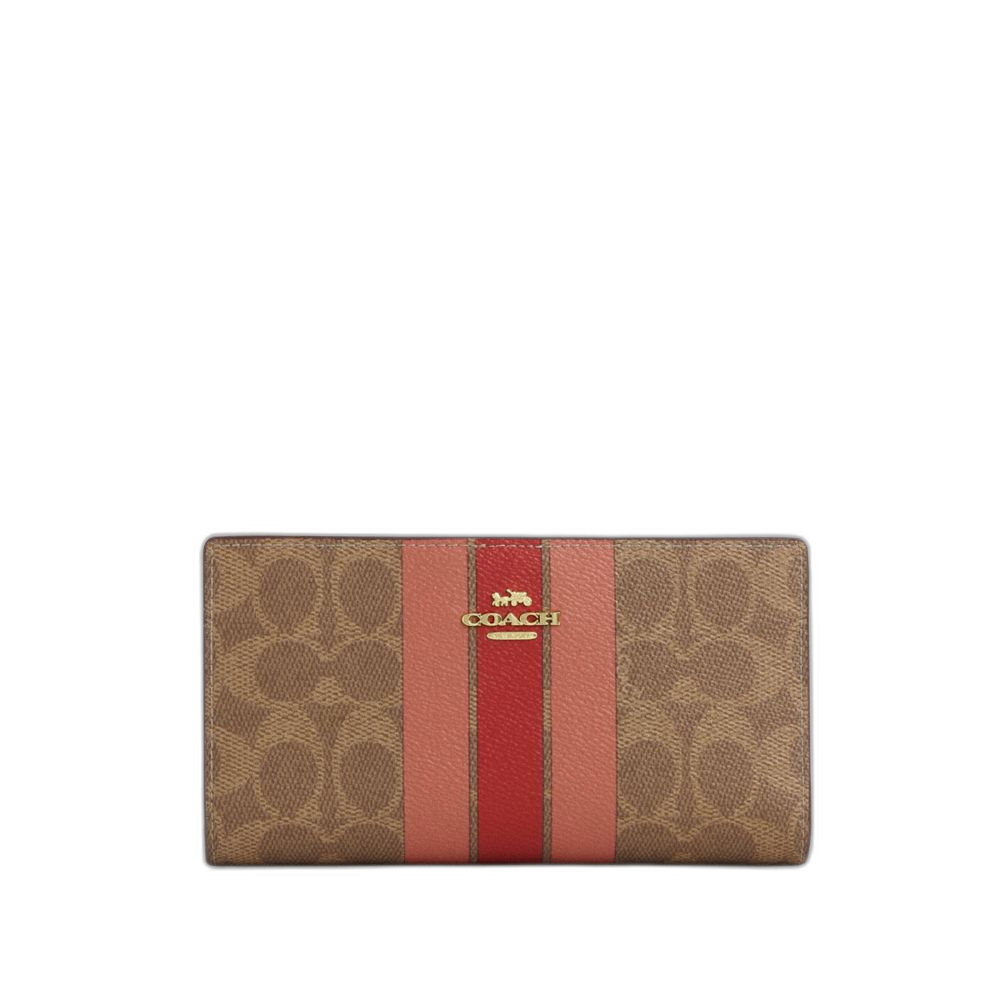 Coach Women's Slim Zip Wallet In Signature Canvas With Stripe Gold/Tan Multi
