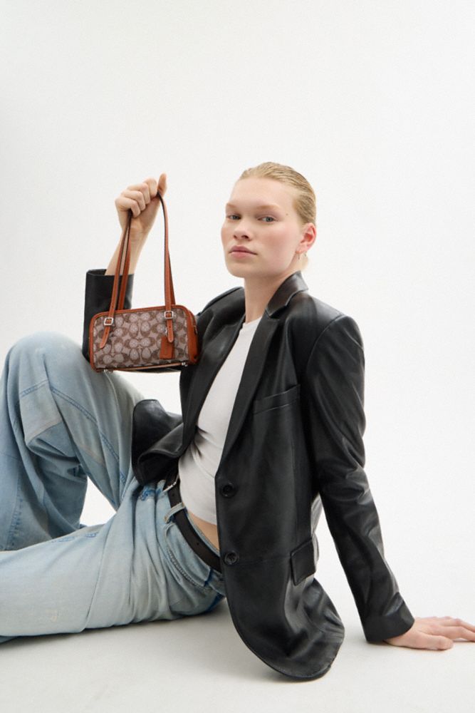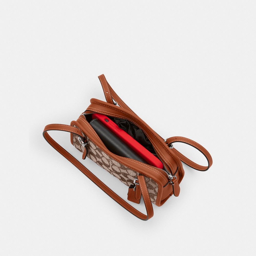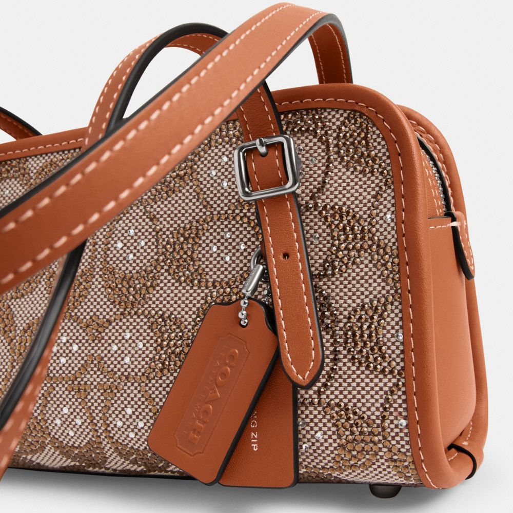 Coach Women's Swing Zip Bag 20 In Crystal Signature Jacquard Silver/Burnished Amber