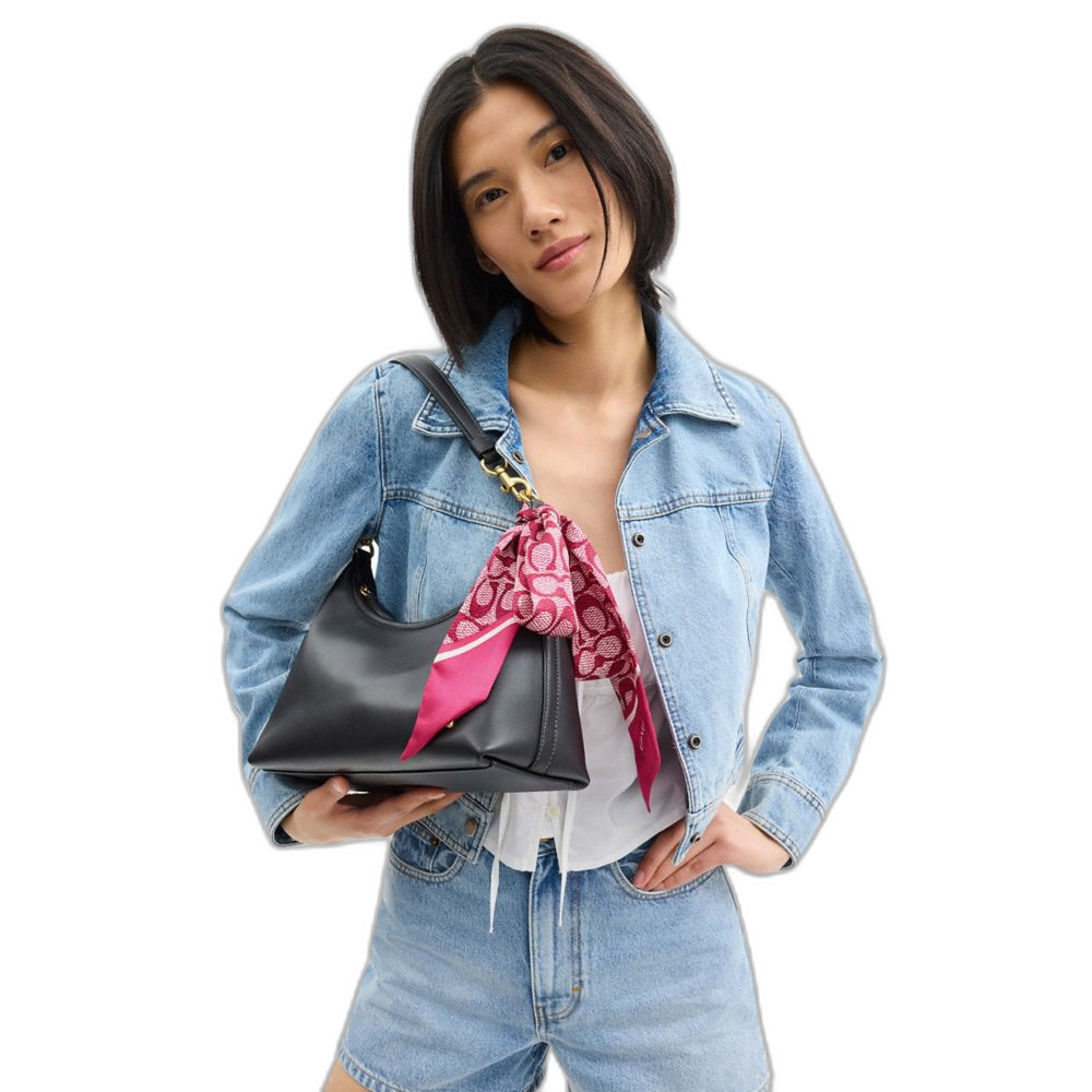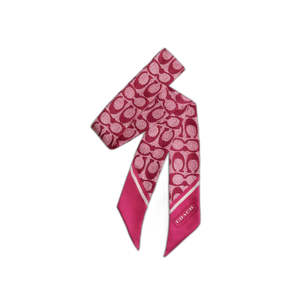 Coach Women's Textured Signature Print Silk Skinny Scarf Dragon Fruit