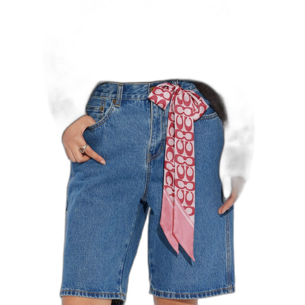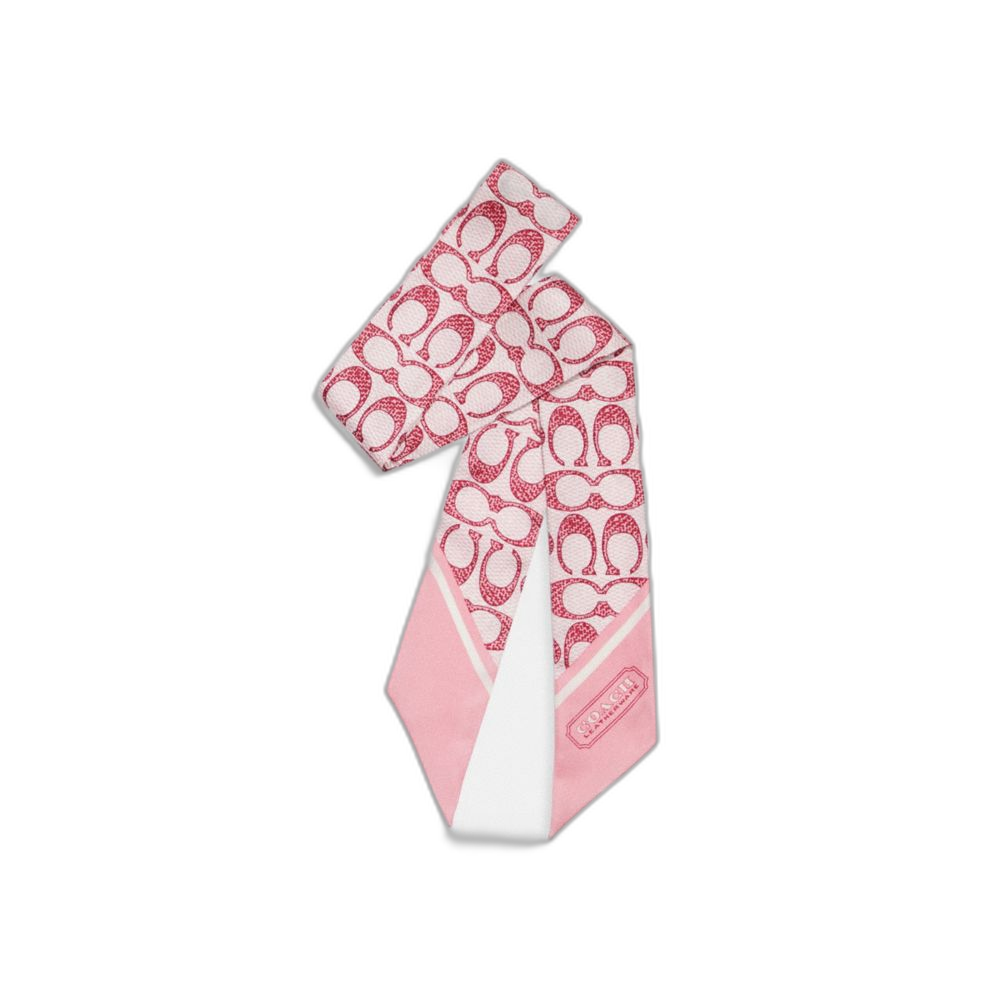 Coach Women's Textured Signature Print Silk Skinny Scarf Flower Pink