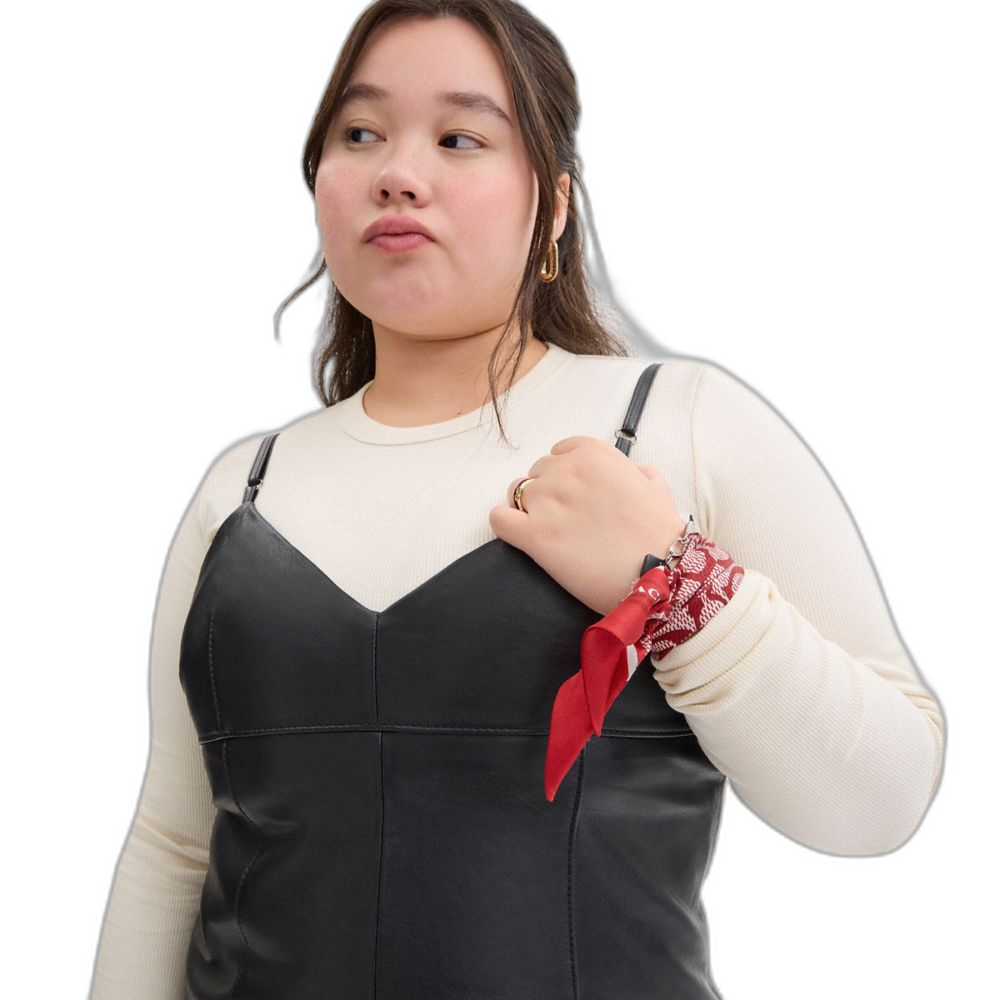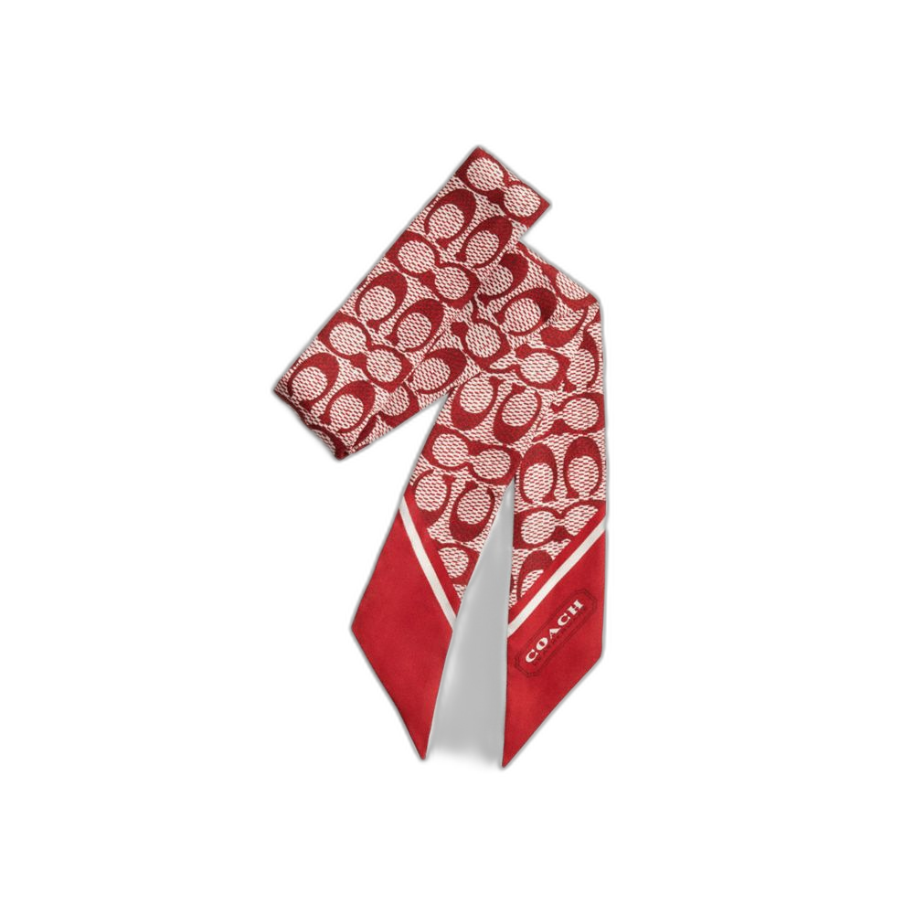 Coach Women's Textured Signature Print Silk Skinny Scarf Ruby