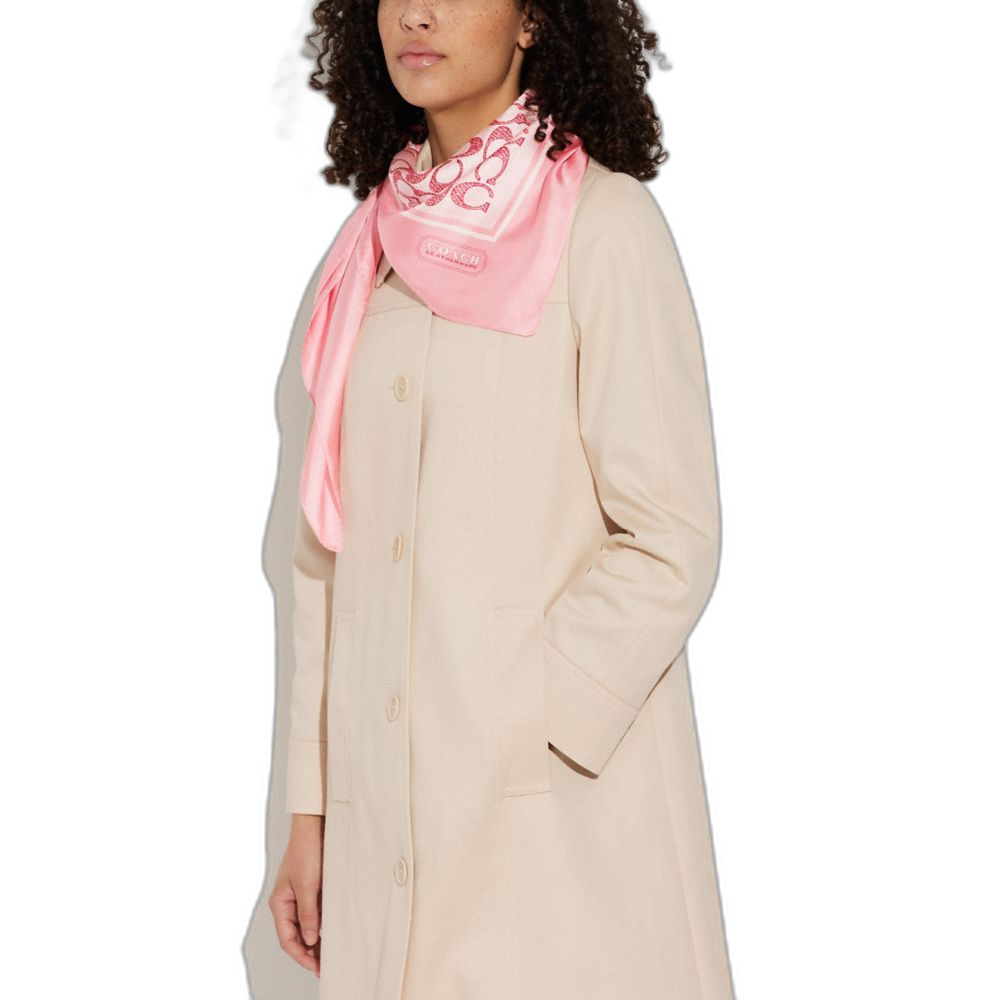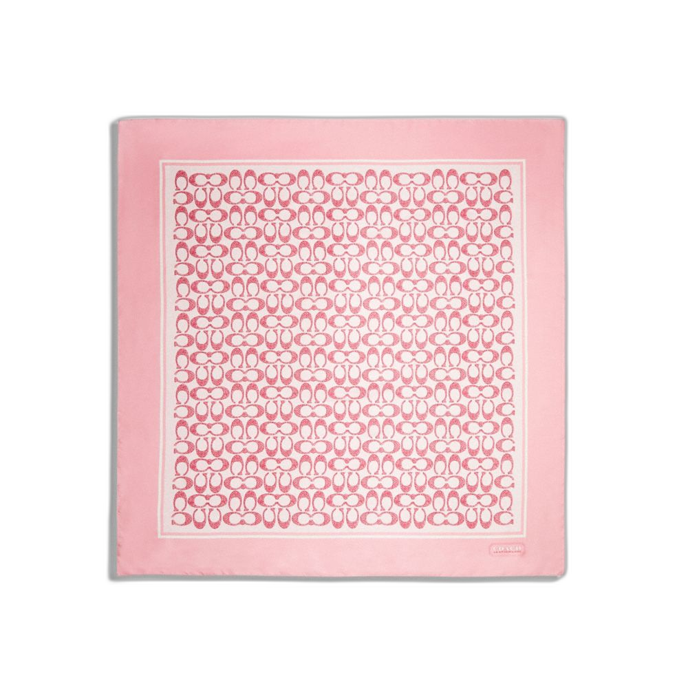 Coach Women's Textured Signature Print Silk Square Scarf Flower Pink