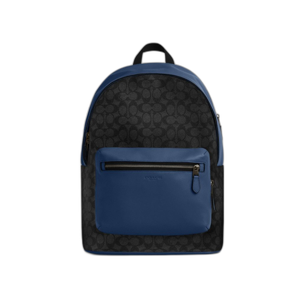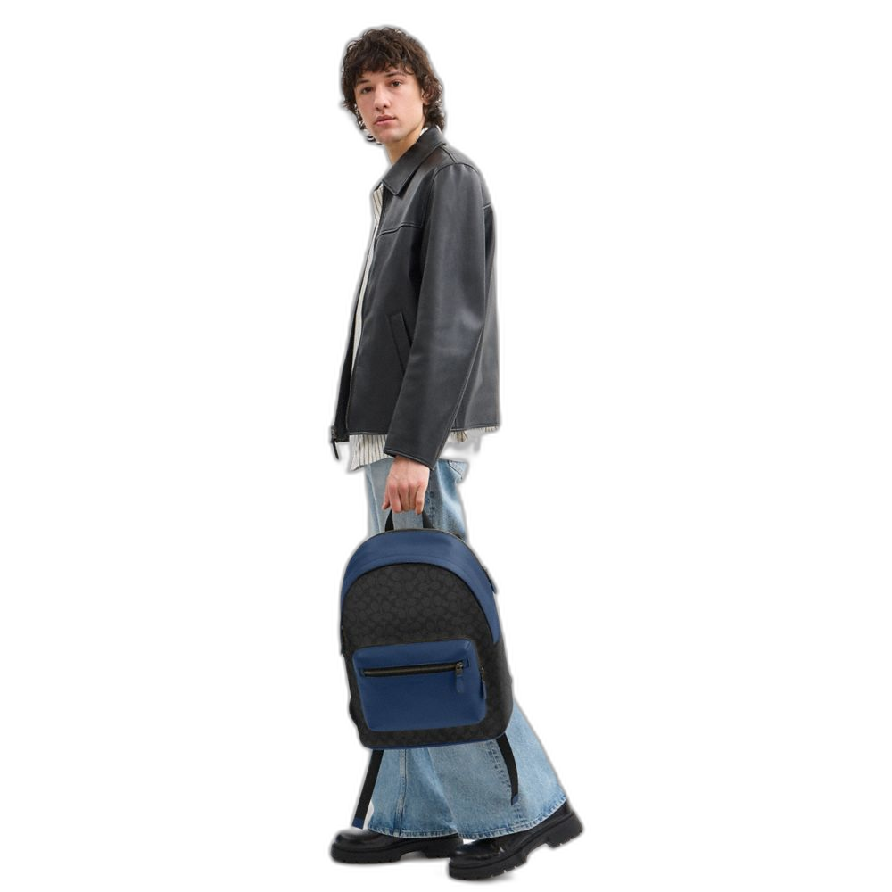 Coach Women's West Backpack In Colorblock Signature Canvas Qb/Charcoal/Deep Blue