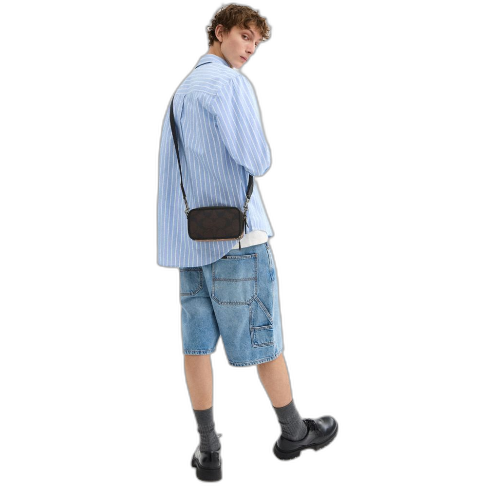 Signature coated canvas and smooth calf leather Two credit card slots Double zip closure, fabric lining Detachable strap with 28"... Read more