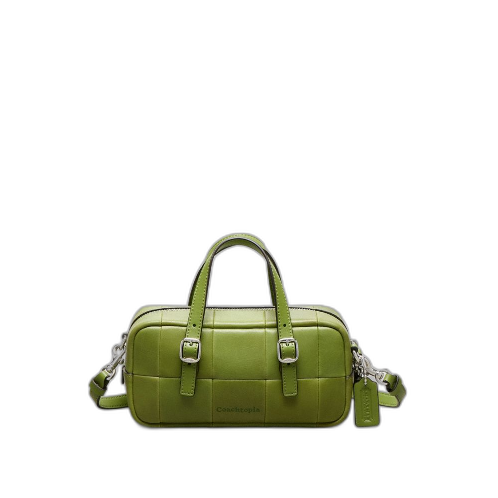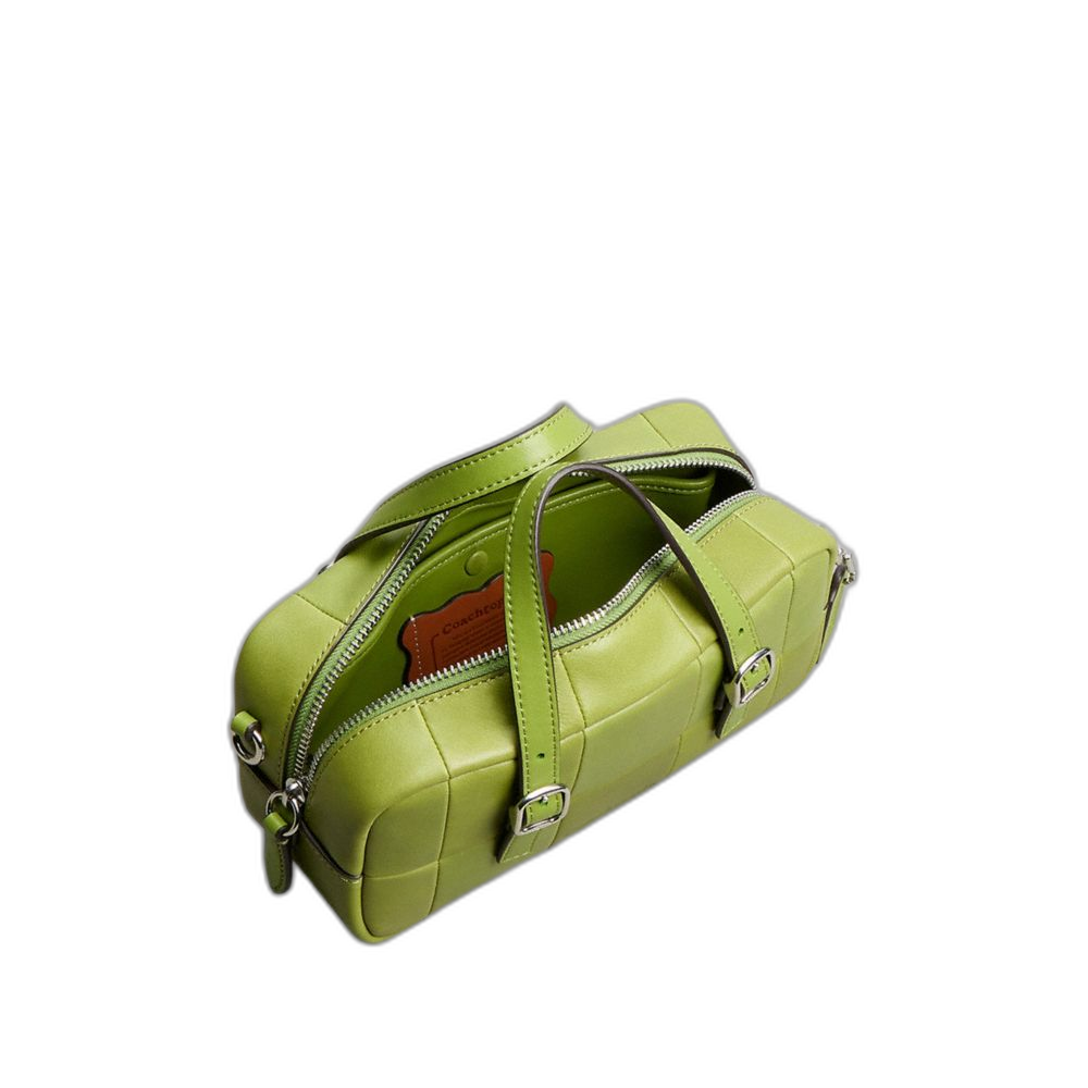 Coach Women's Alter/Ego Mini Satchel Bag In Checkerboard Upcrafted Leather With Crossbody Strap Dark Lime