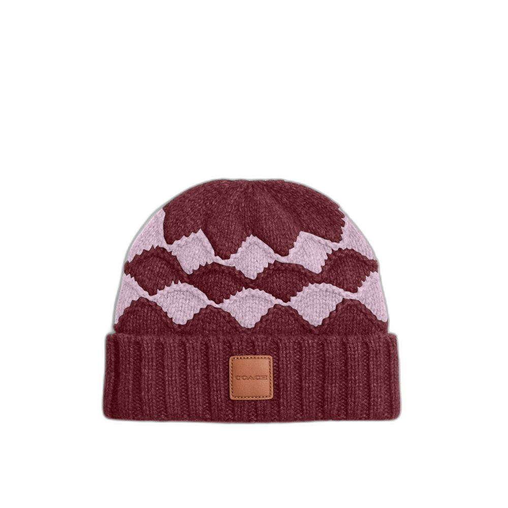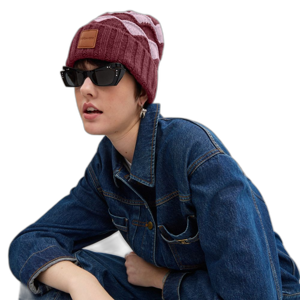 Coach Women's Bobble Stripe Beanie Oxblood/Pink