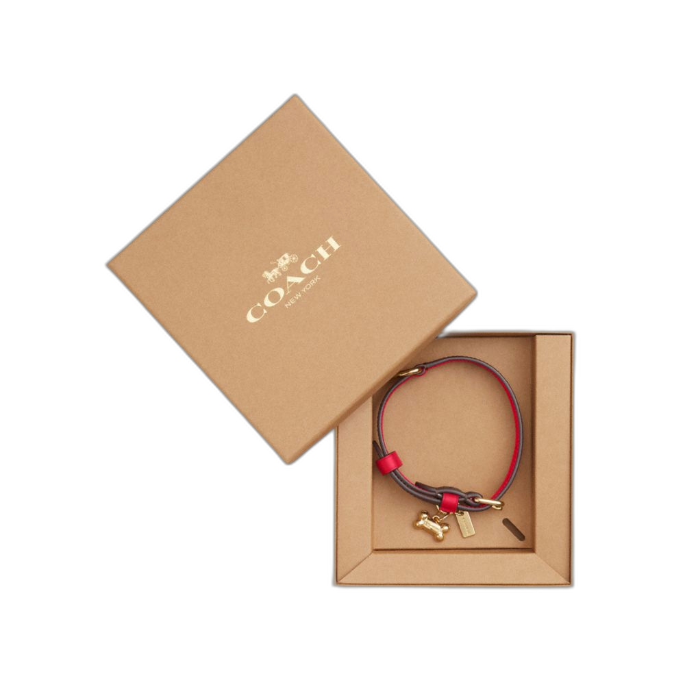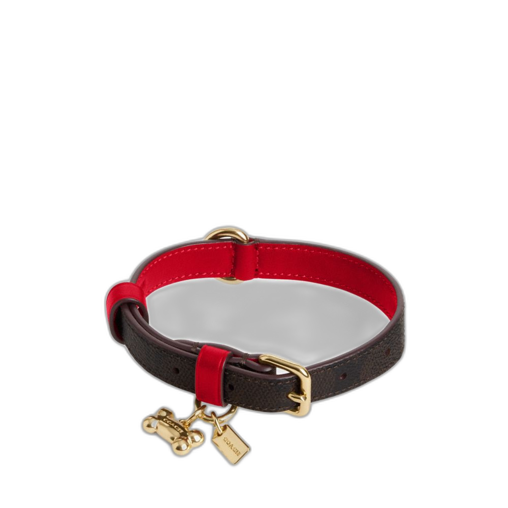 Coach Women's Boxed Small Pet Collar In Signature Canvas Gold/Walnut/Bold Red