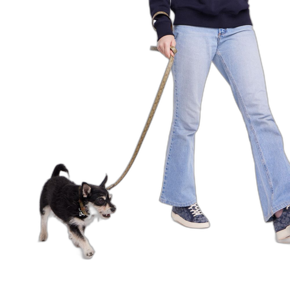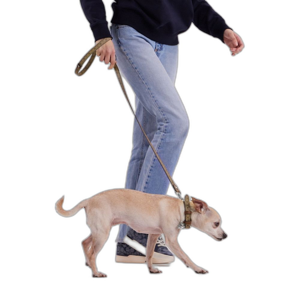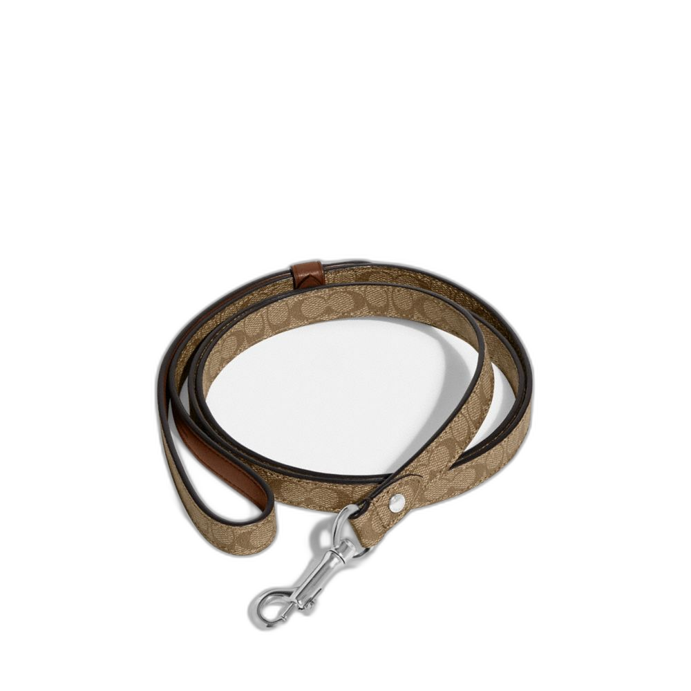 Coach Women's Boxed Small Pet Leash In Signature Canvas Silver/Khaki Saddle