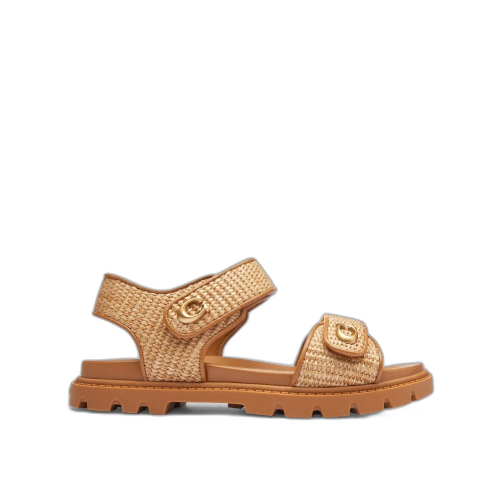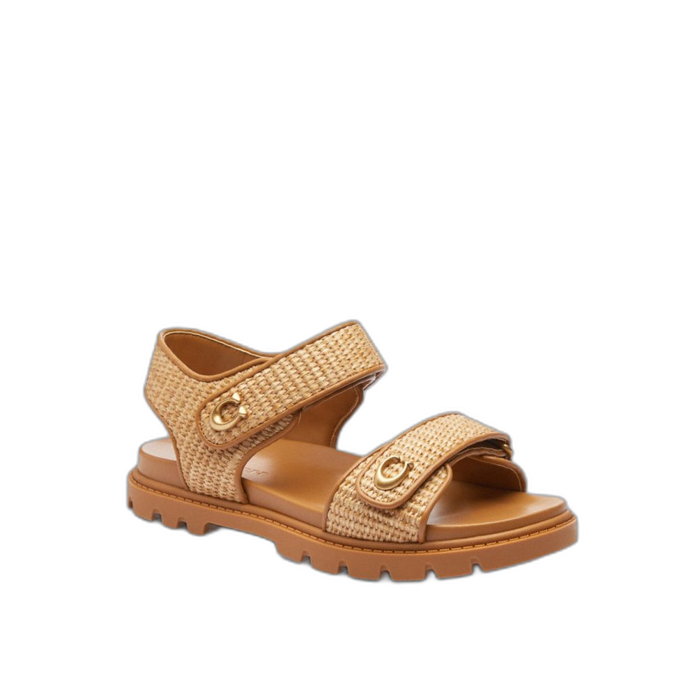 Straw and man-made leather upper Man-made leather lining and footbed EVA outsole Velcro closure 3/4" heelStyle No. CAR55 Read more