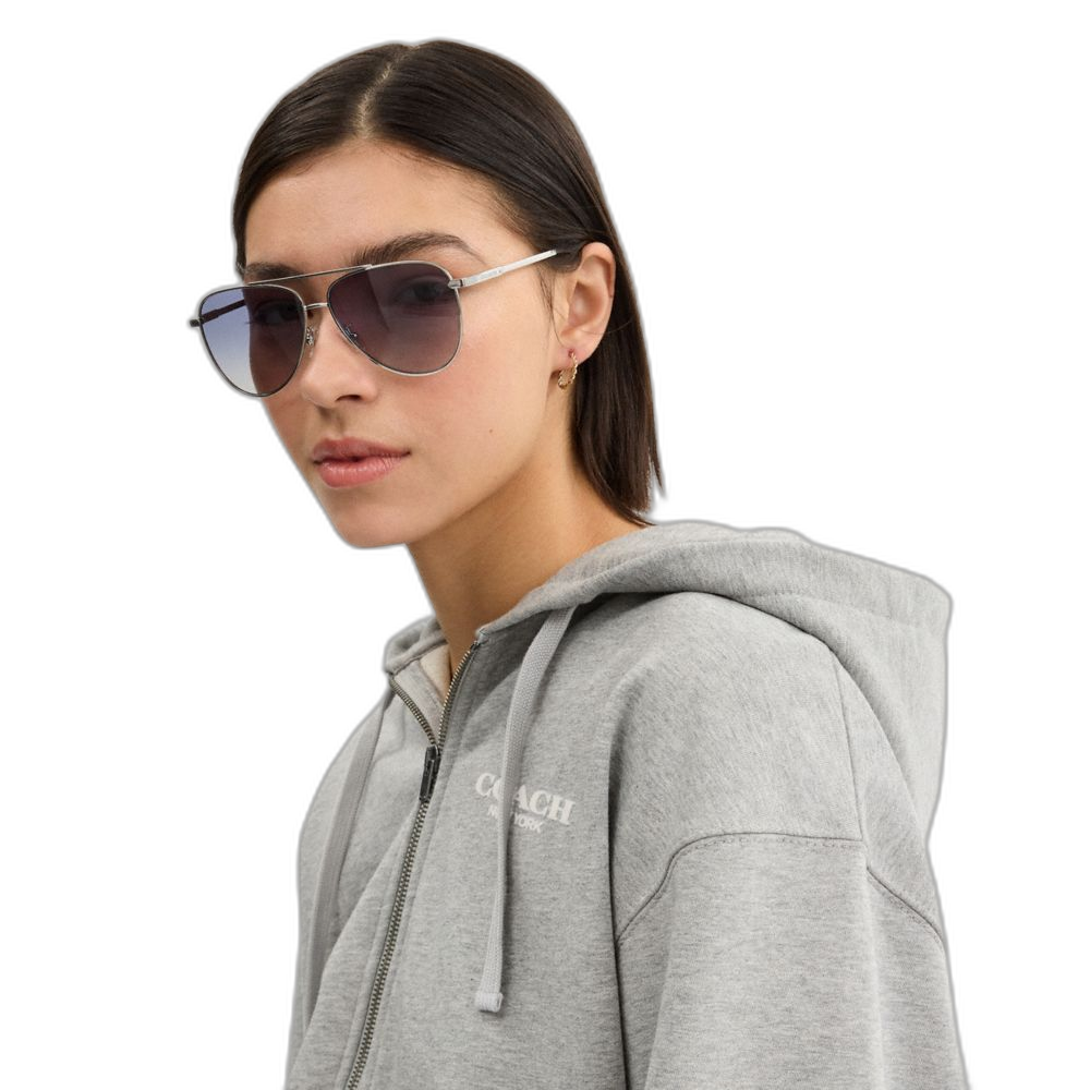 Coach Women's C Hardware Metal Pilot Sunglasses Silver Blue