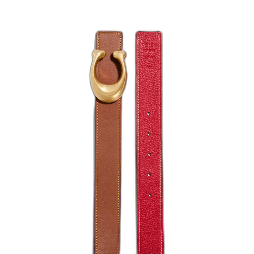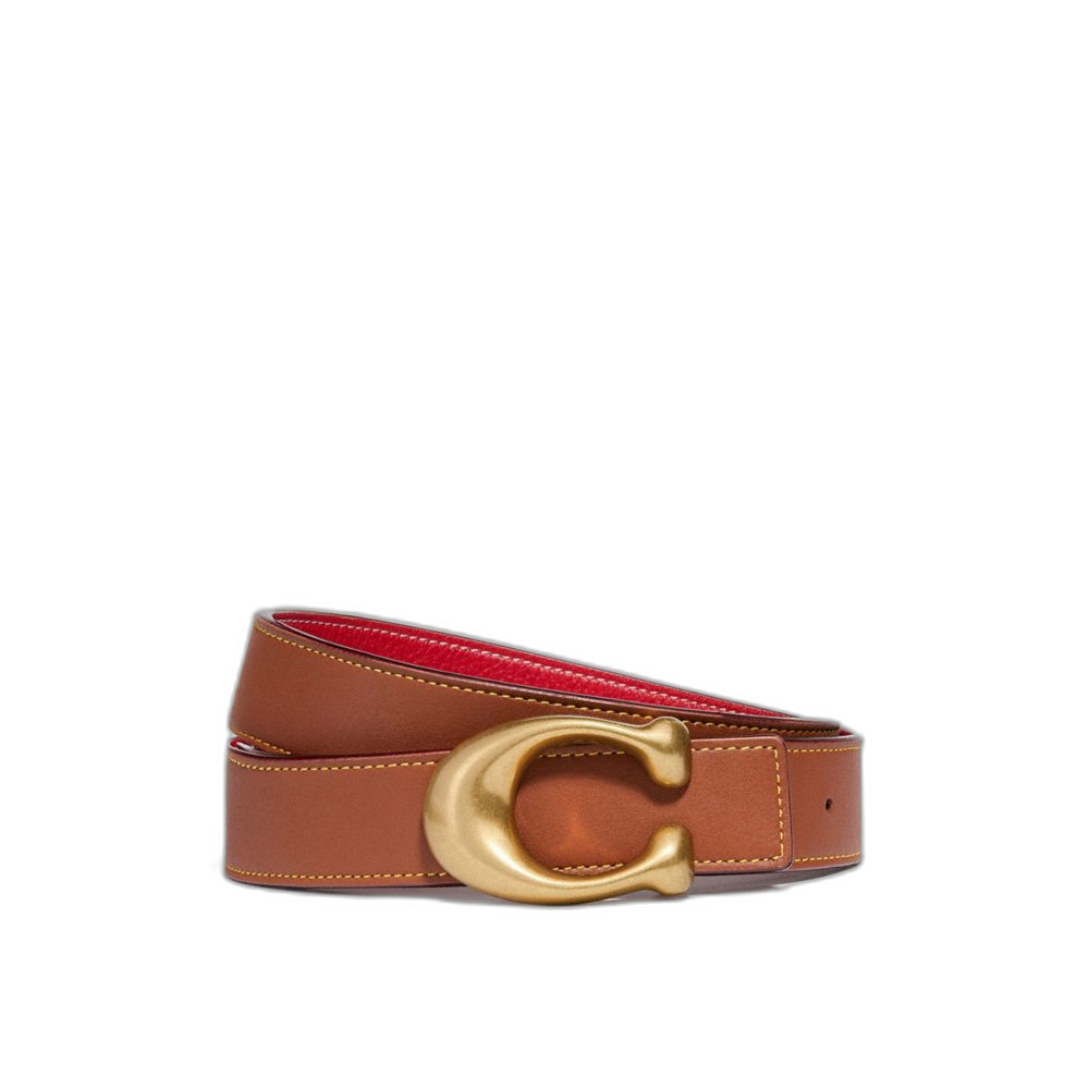 Coach Women's C Hardware Reversible Belt, 32 Mm Brass/Red/1941 Saddle