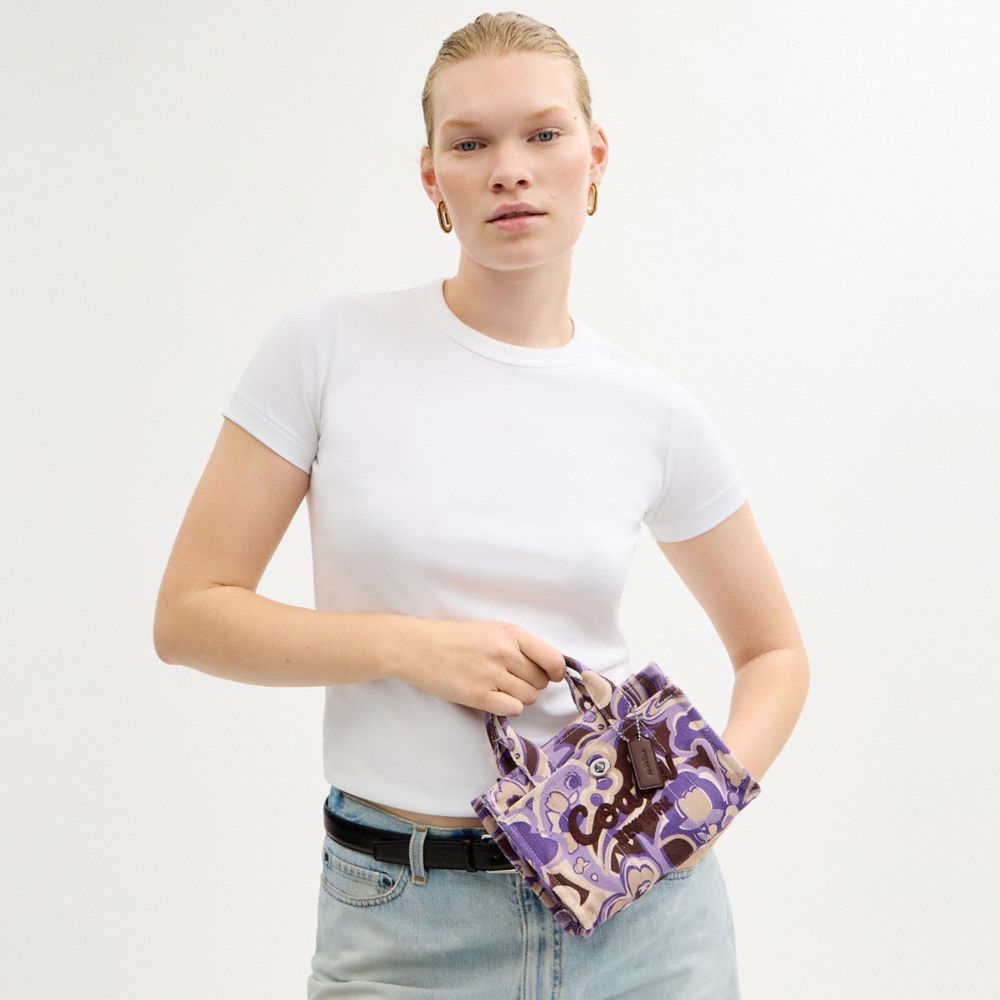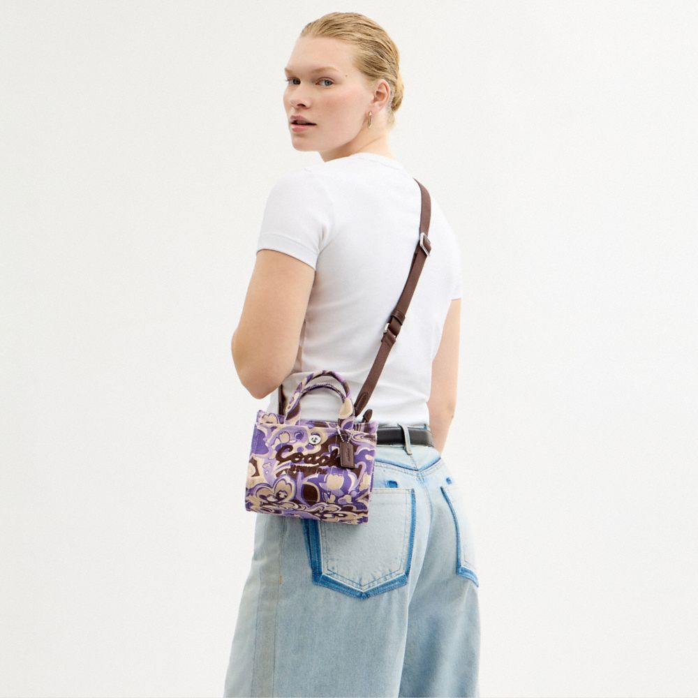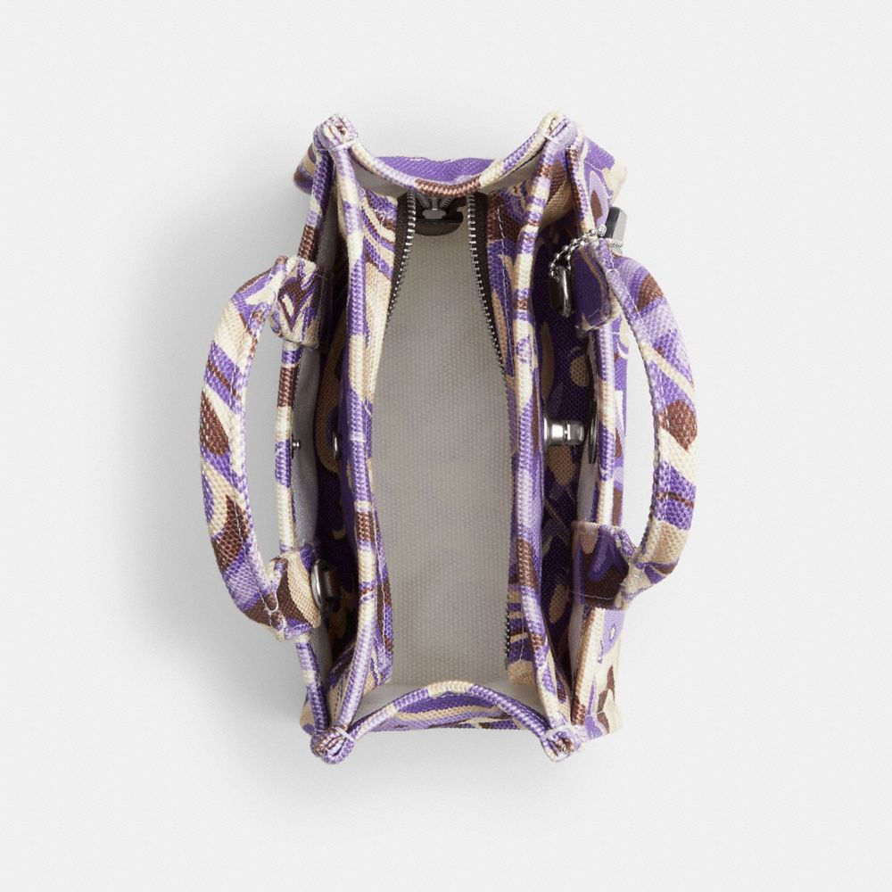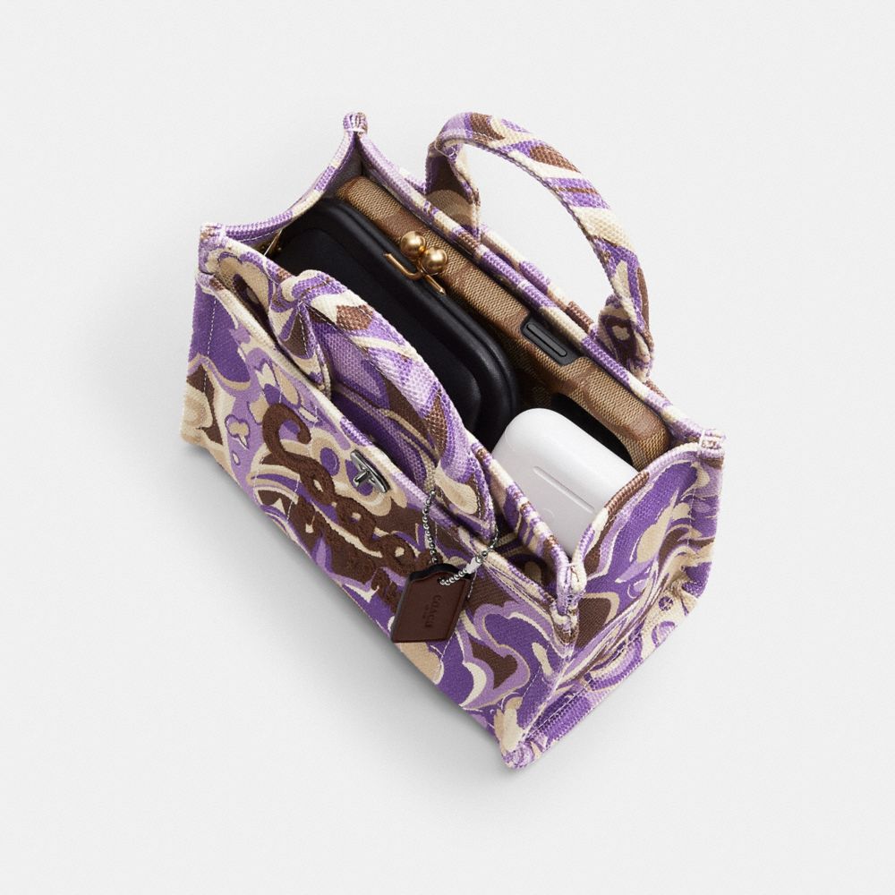 Coach Women's Cargo Tote Bag 20 With Paisley Print Silver/Purple Brown