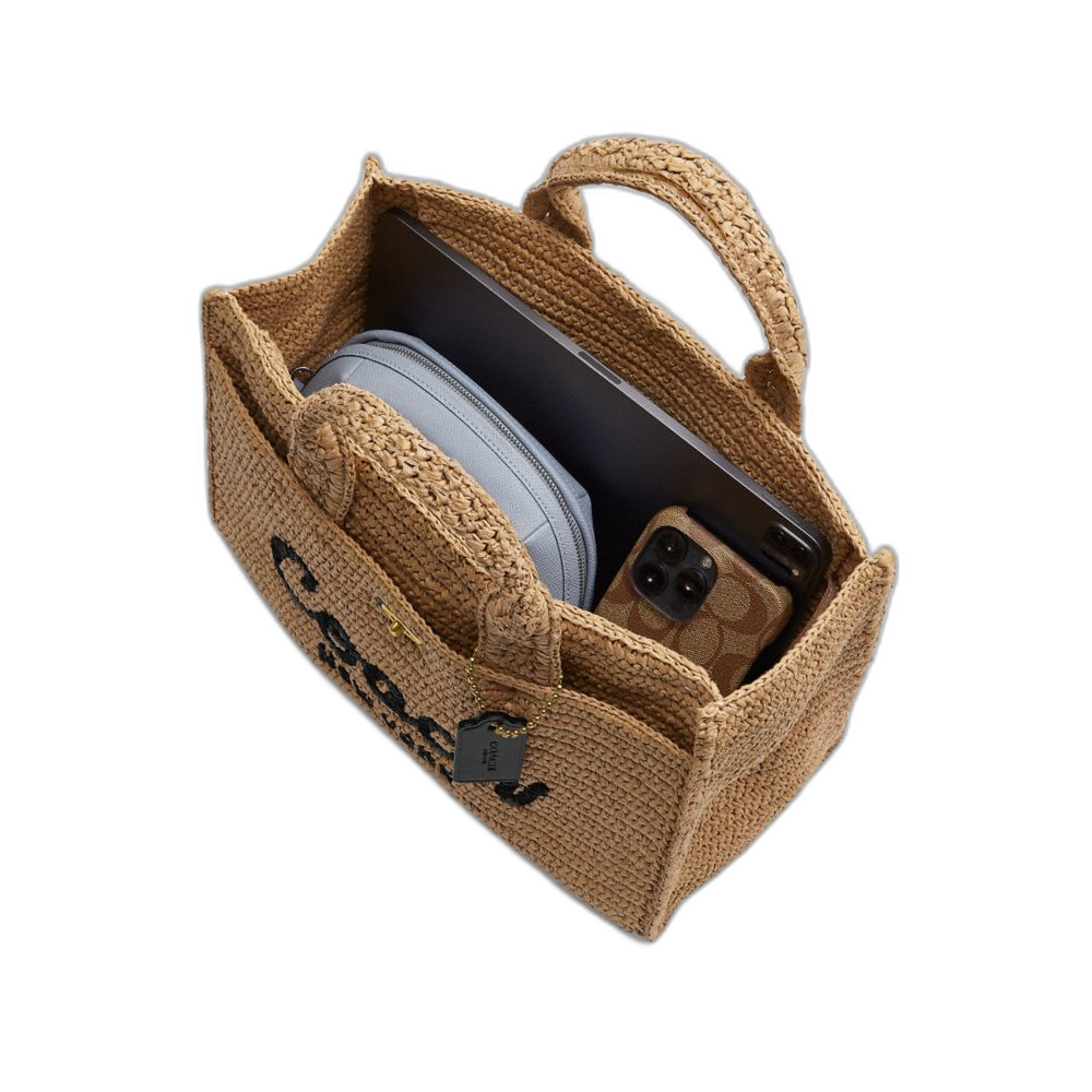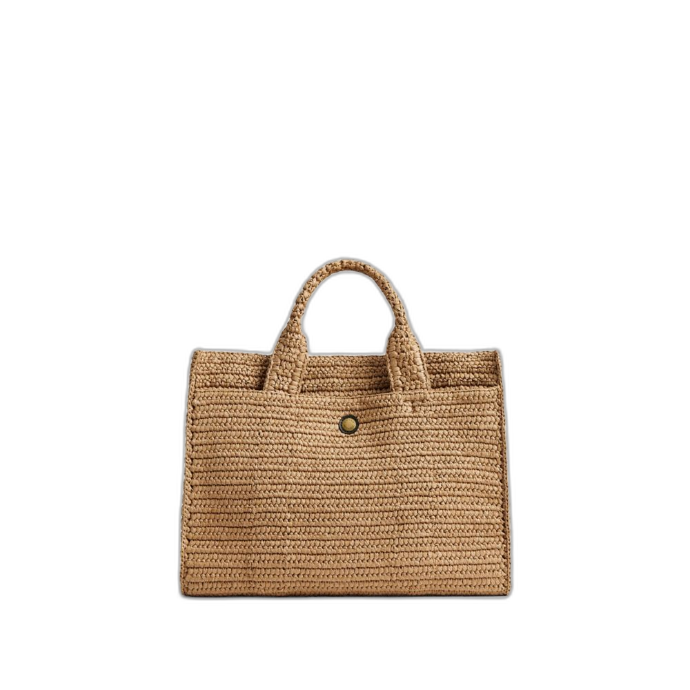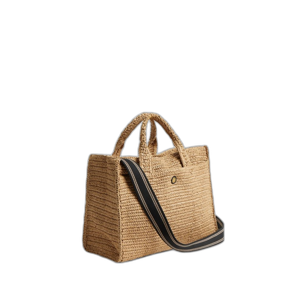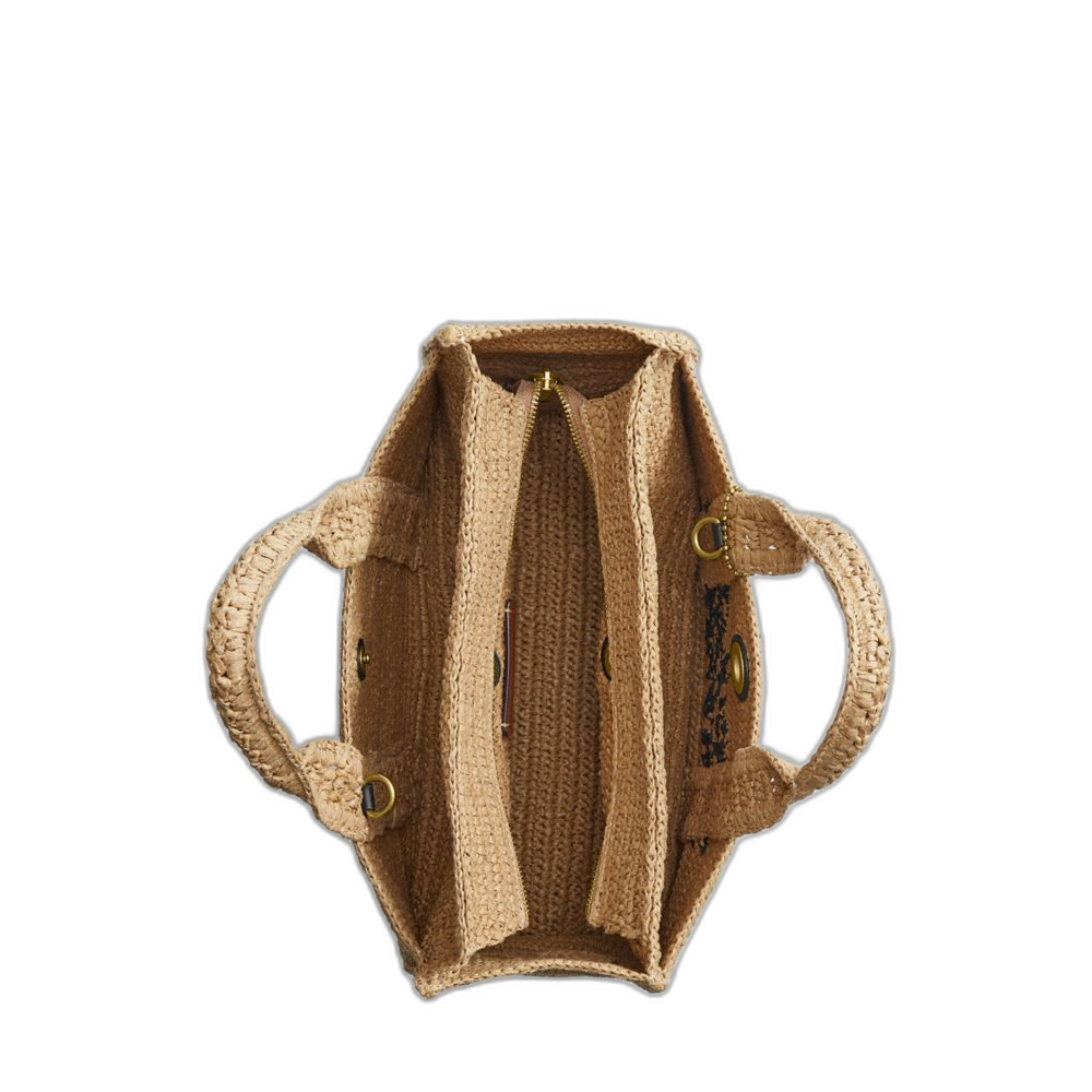 Paper straw Zip-top closure, fabric lining Handles with 4 1/2" drop Outside turnlock and snap pockets Detachable strap with 24"... Read more