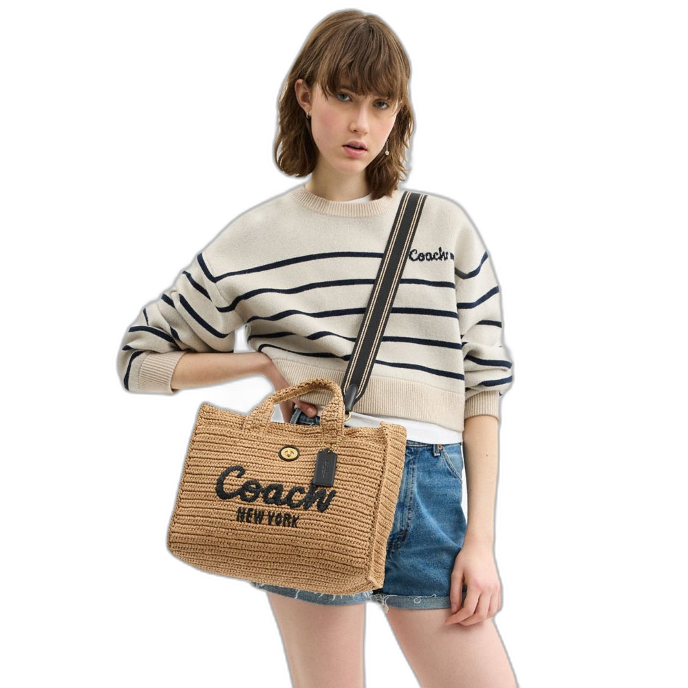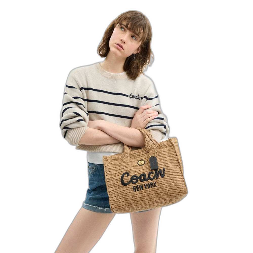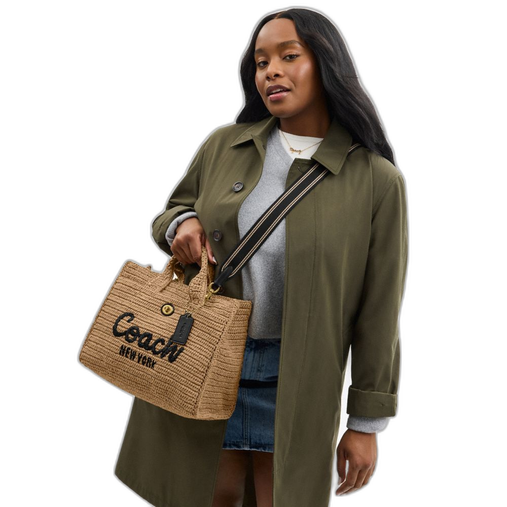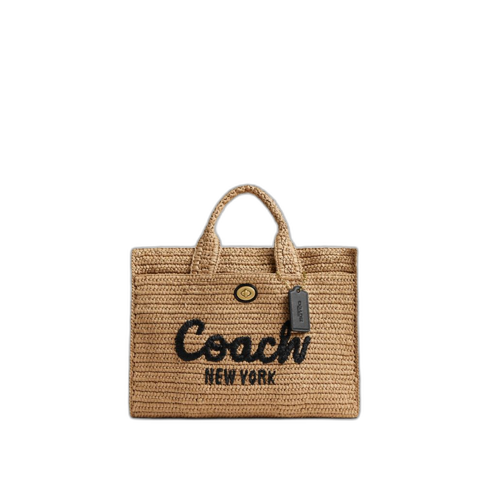 Paper straw Zip-top closure, fabric lining Handles with 4 1/2" drop Outside turnlock and snap pockets Detachable strap with 24"... Read more