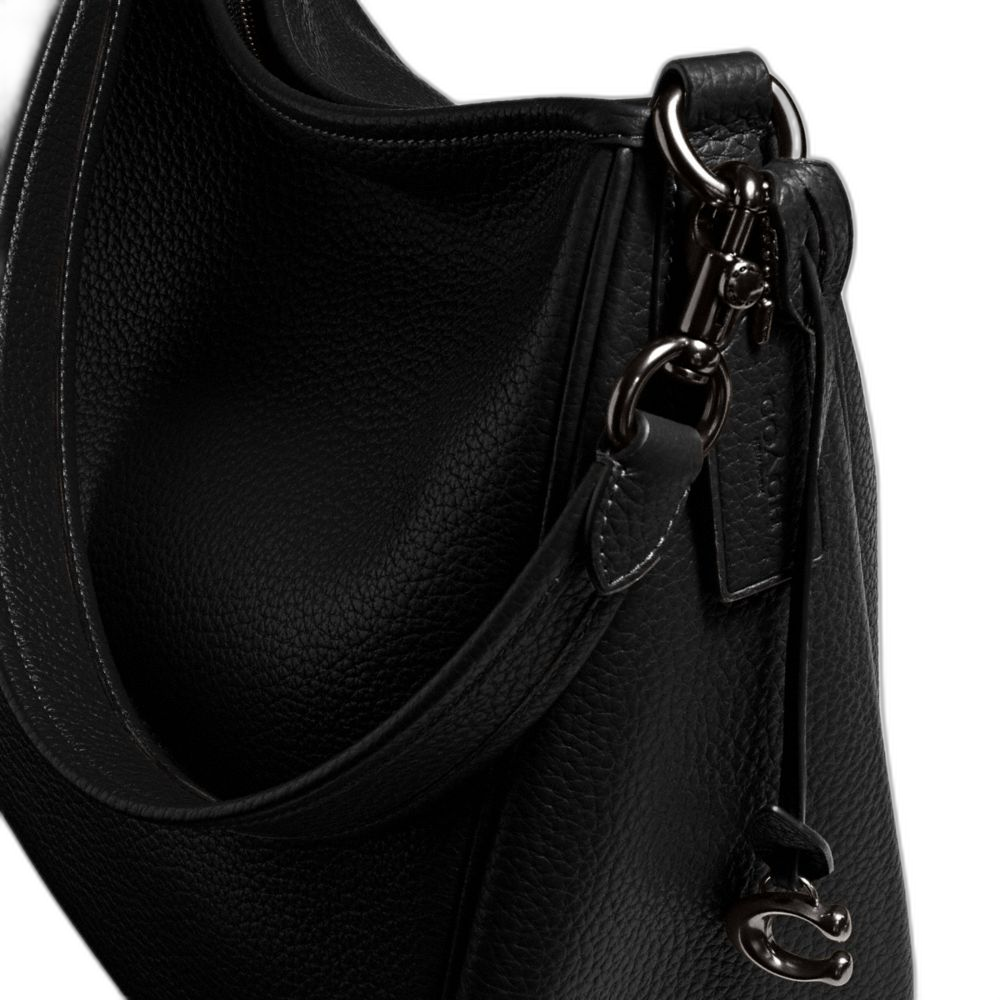Soft pebble leather Inside snap and multifunction pockets Zip-top closure, fabric lining Detachable handle with 9" drop Outside zip pocket... Read more