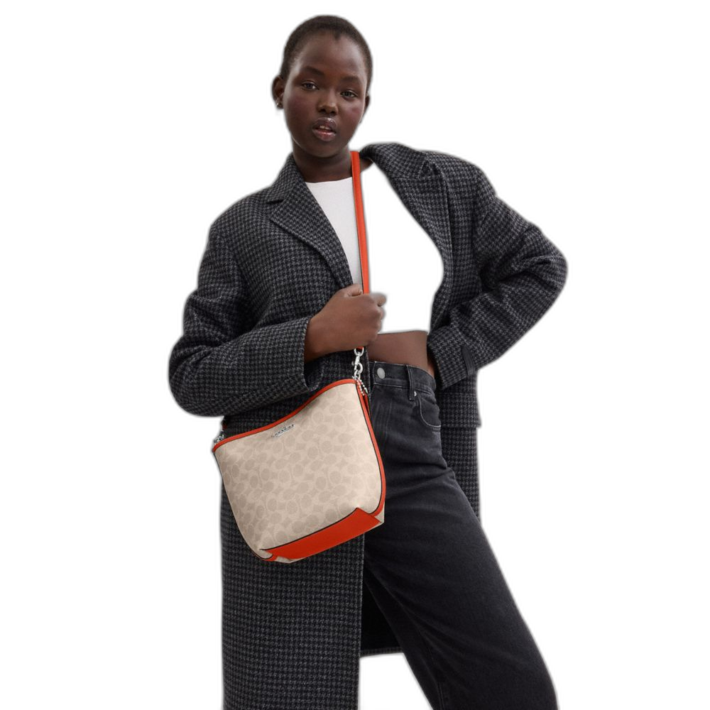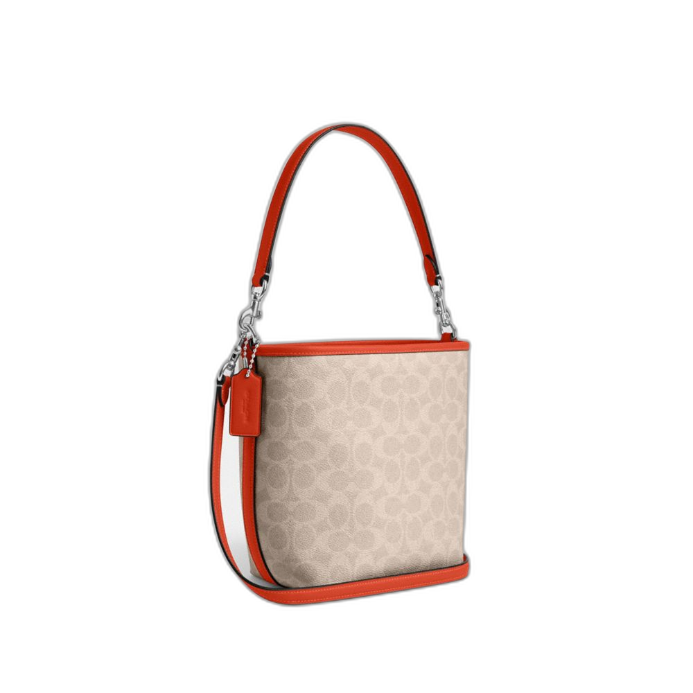 Coach Women's City Bucket Bag In Signature Canvas Silver/Sand/Deep Orange