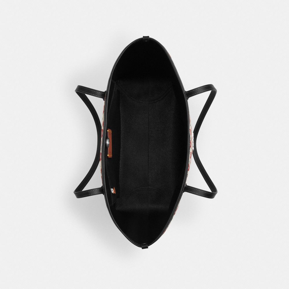 Coach Women's City Tote Bag With Floral Print Silver/Chalk/Black Multi