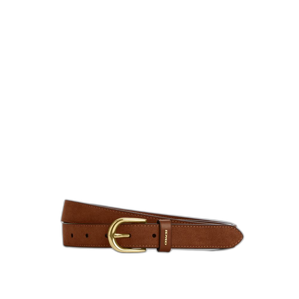 Coach Women's Classic Buckle Belt In Suede, 25 Mm Gold/Sienna