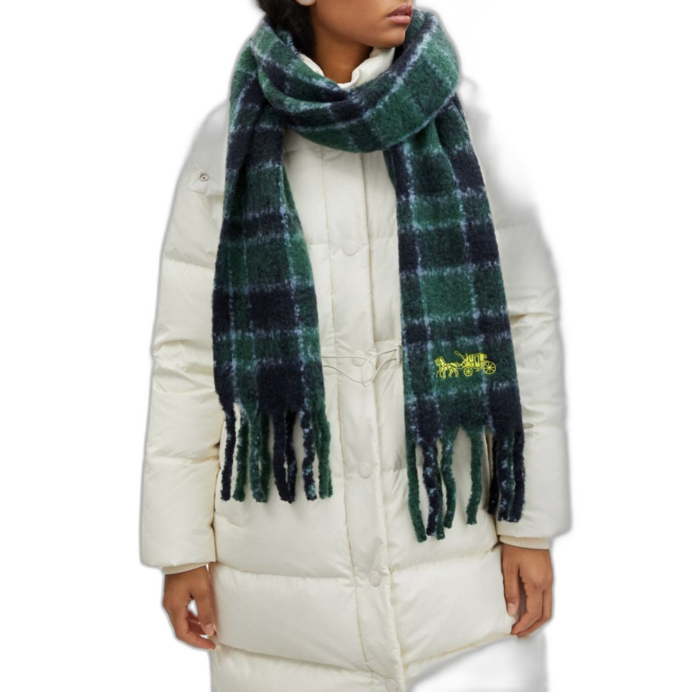 Coach Women's Classic Plaid Oversized Muffler Dark Pine