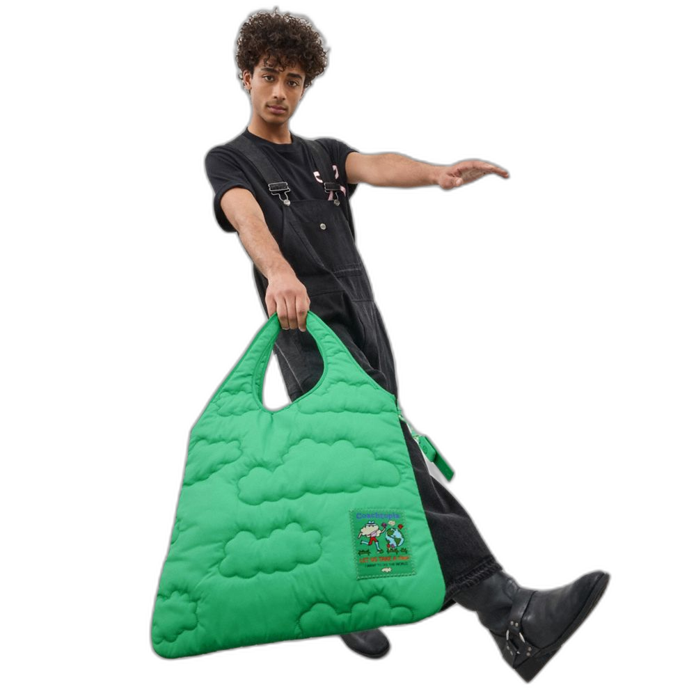 Coach Women's Coachtopia Loop Flat Tote With Cloud Quilting Electric Kelp