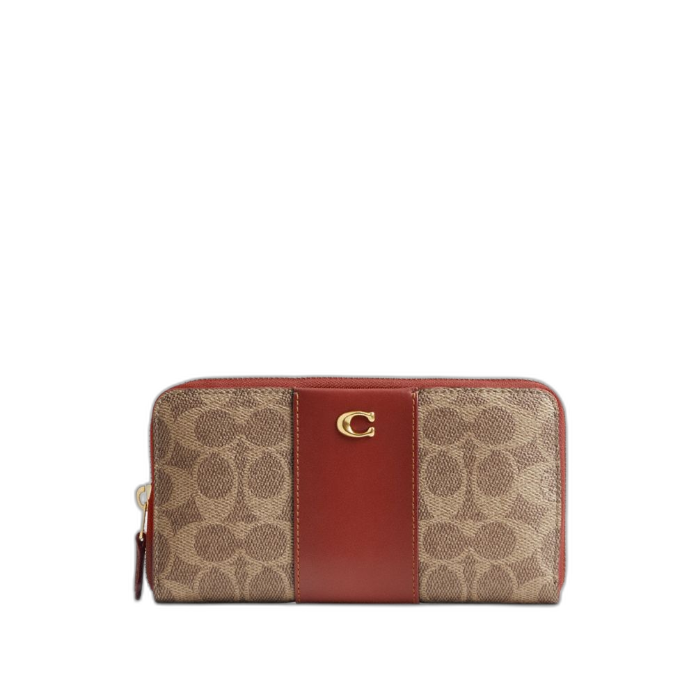 Coach Women's Essential Accordion Zip Wallet In Colorblock Signature Canvas Brass/Tan/Rust