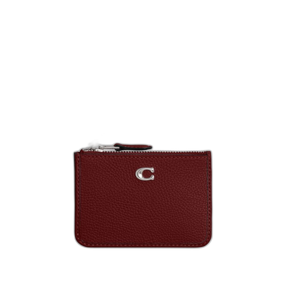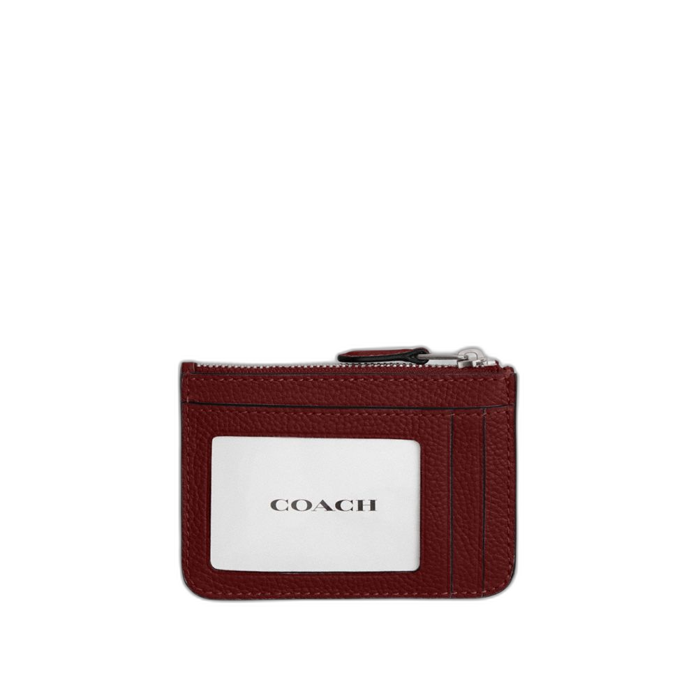 Coach Women's Essential Mini Id Card Case Silver/Dark Ruby