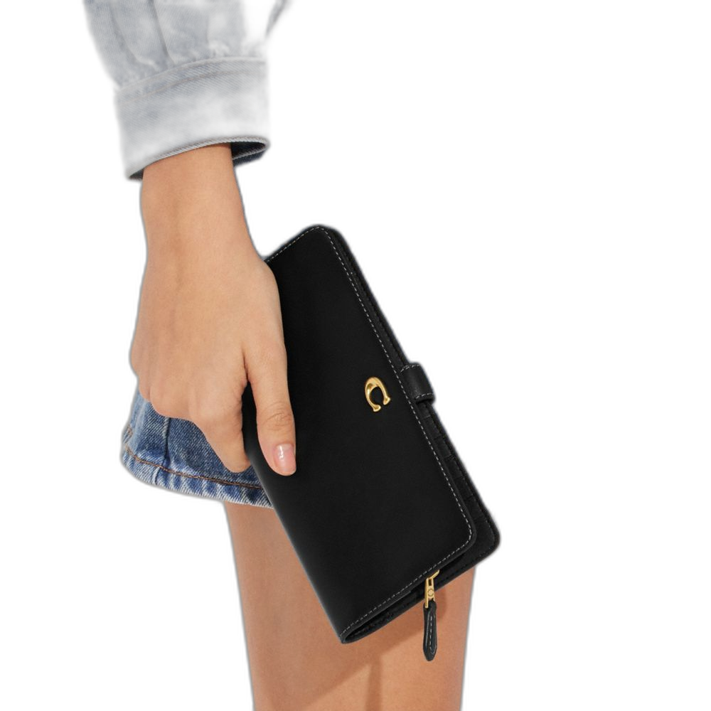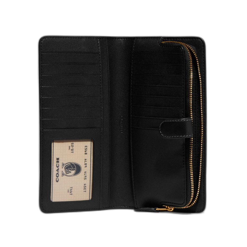 Refined calf leather 15 credit card slots Full-length bill compartments ID window Zip coin pocket Snap closure 7 3/4" (L)... Read more