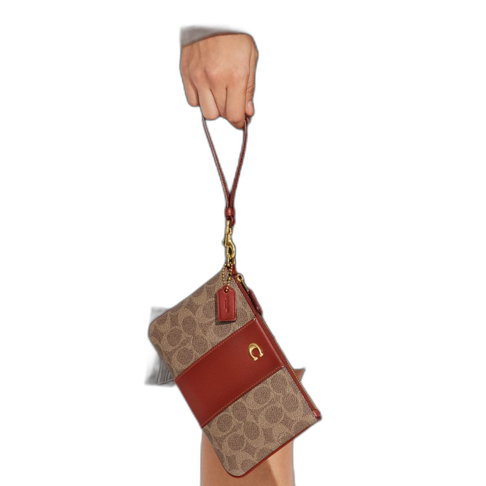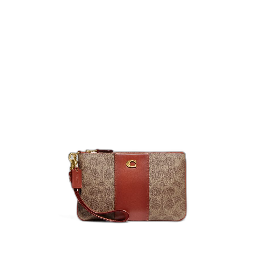 Coach Women's Essential Small Wristlet In Signature Canvas Brass/Tan/Rust