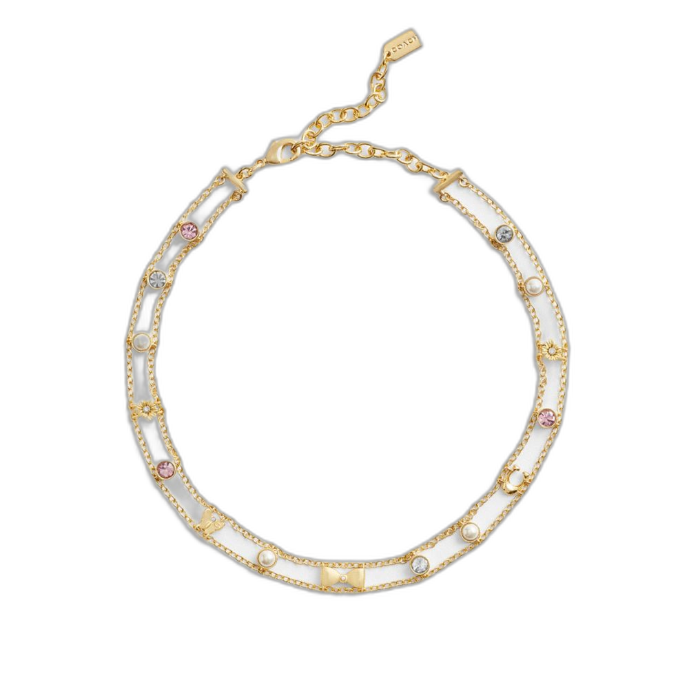 Plated brass, glass and cubic zirconia Lobster clasp closure Adjustable 12" - 15" (L) Comes packaged in a floral-print Coach... Read more