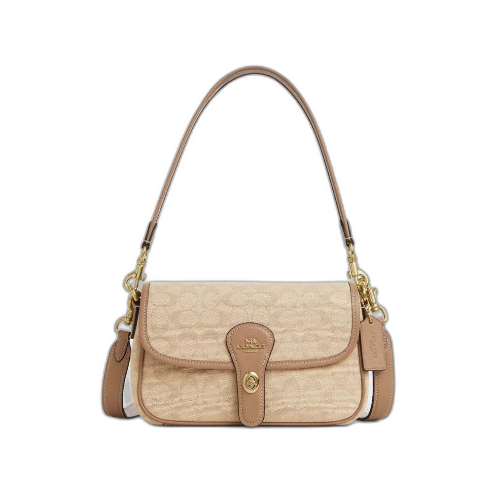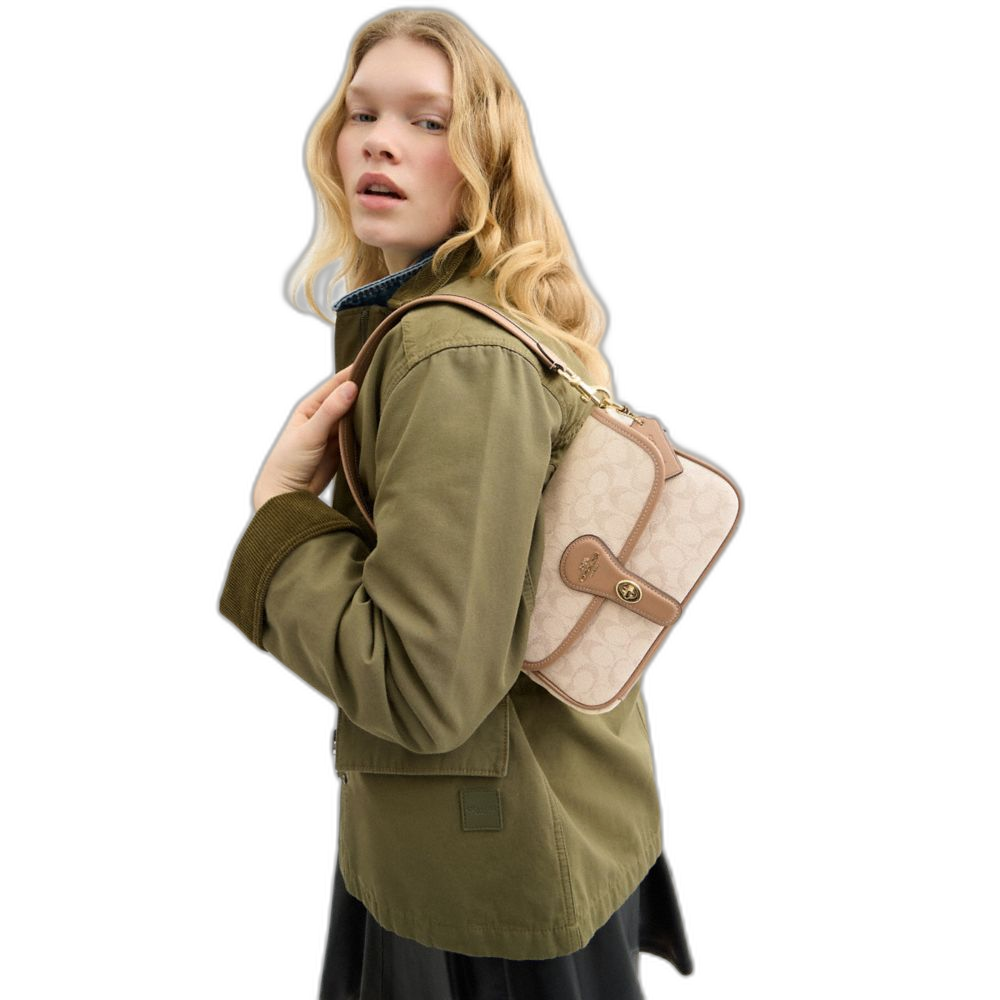 Coach Women's Hadley Shoulder Bag With Signature Canvas Im/Dark Natural Multi