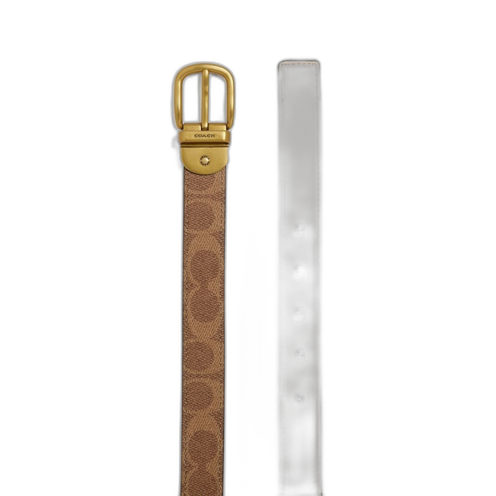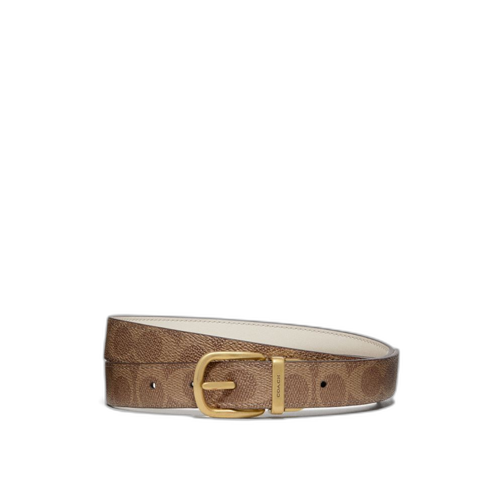 Coach Women's Harness Buckle Reversible Belt, 25 Mm Brass/Chalk Tan